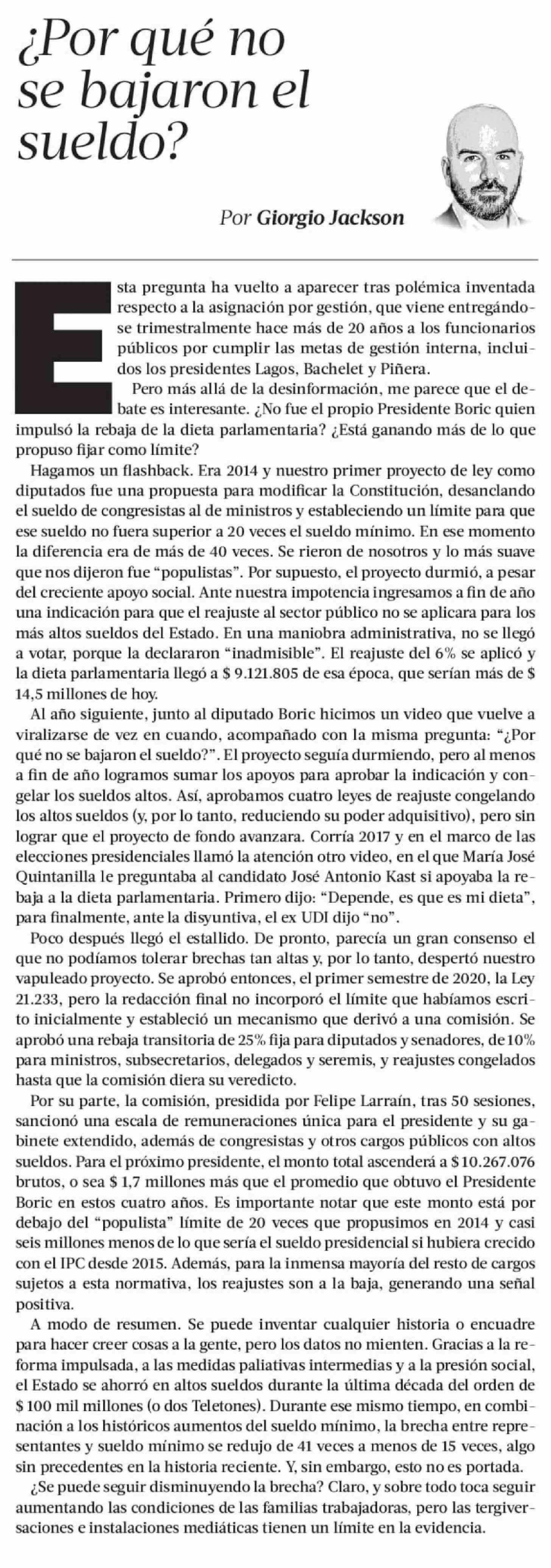 Columnas de Opinión: ¿Por qué no se bajaron el sueldo?
