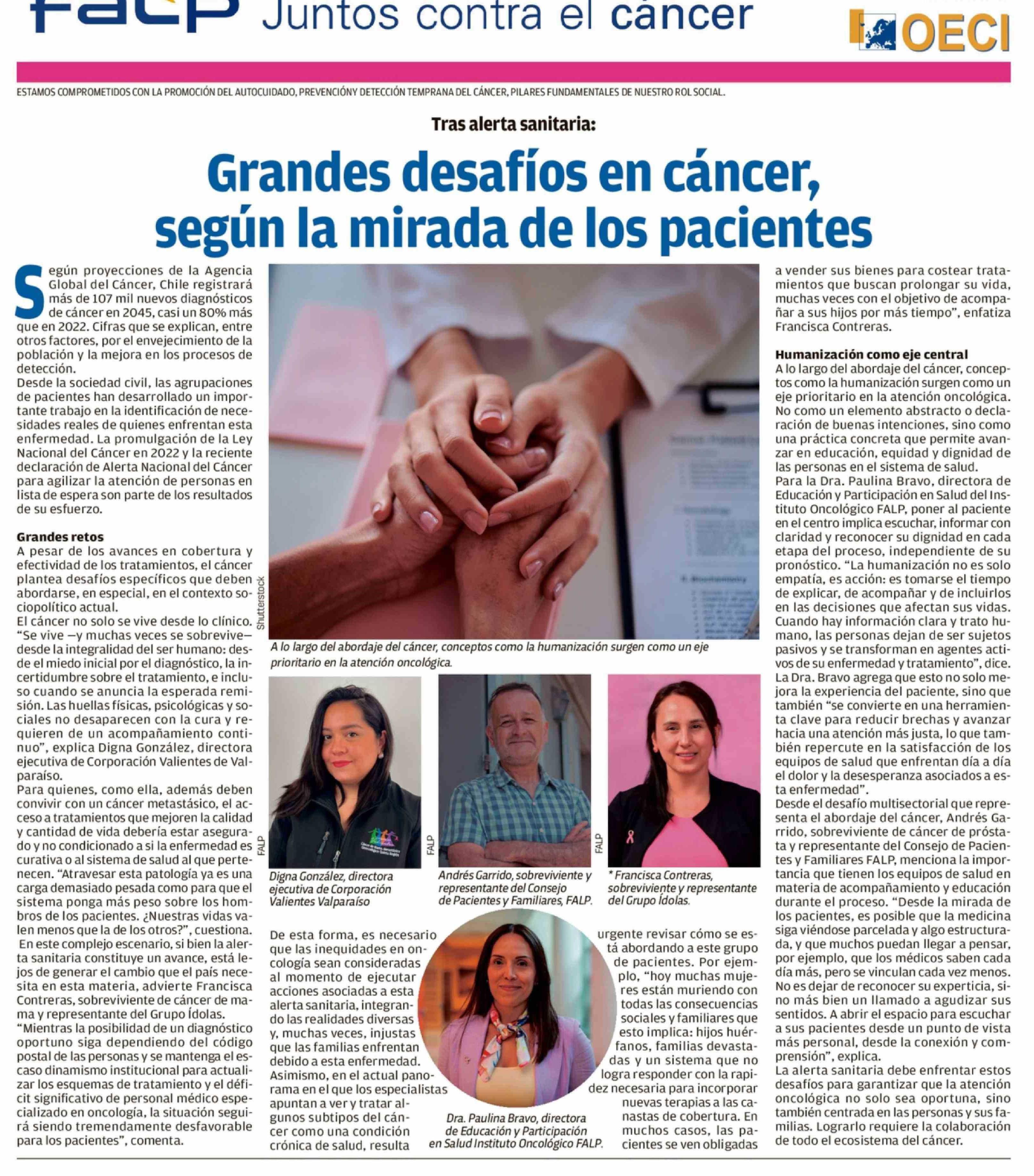 Grandes desafíos en cáncer, según la mirada de los pacientes