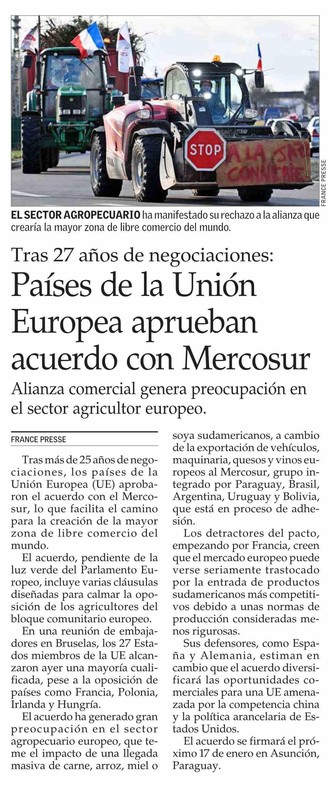 Países de la Unión Europea aprueban acuerdo con Mercosur