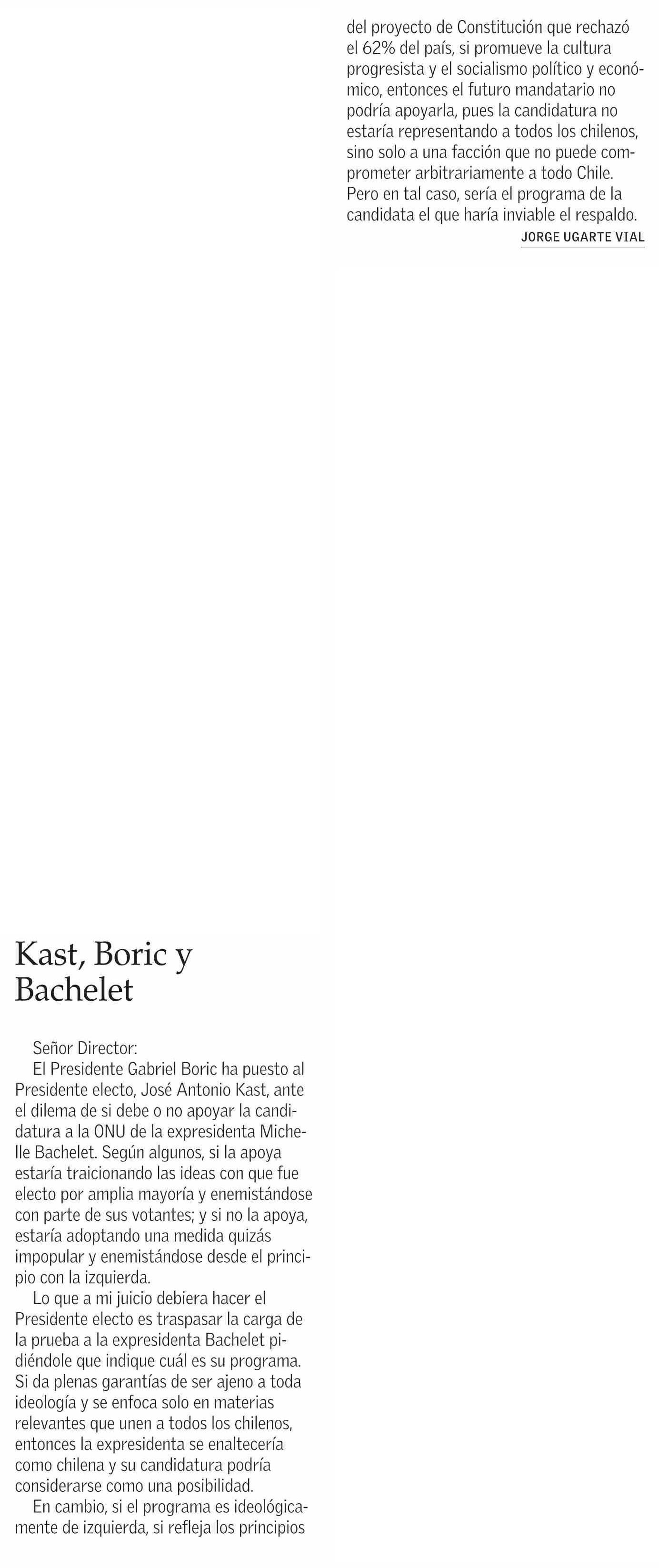 Cartas: Kast, Boric y Bachelet