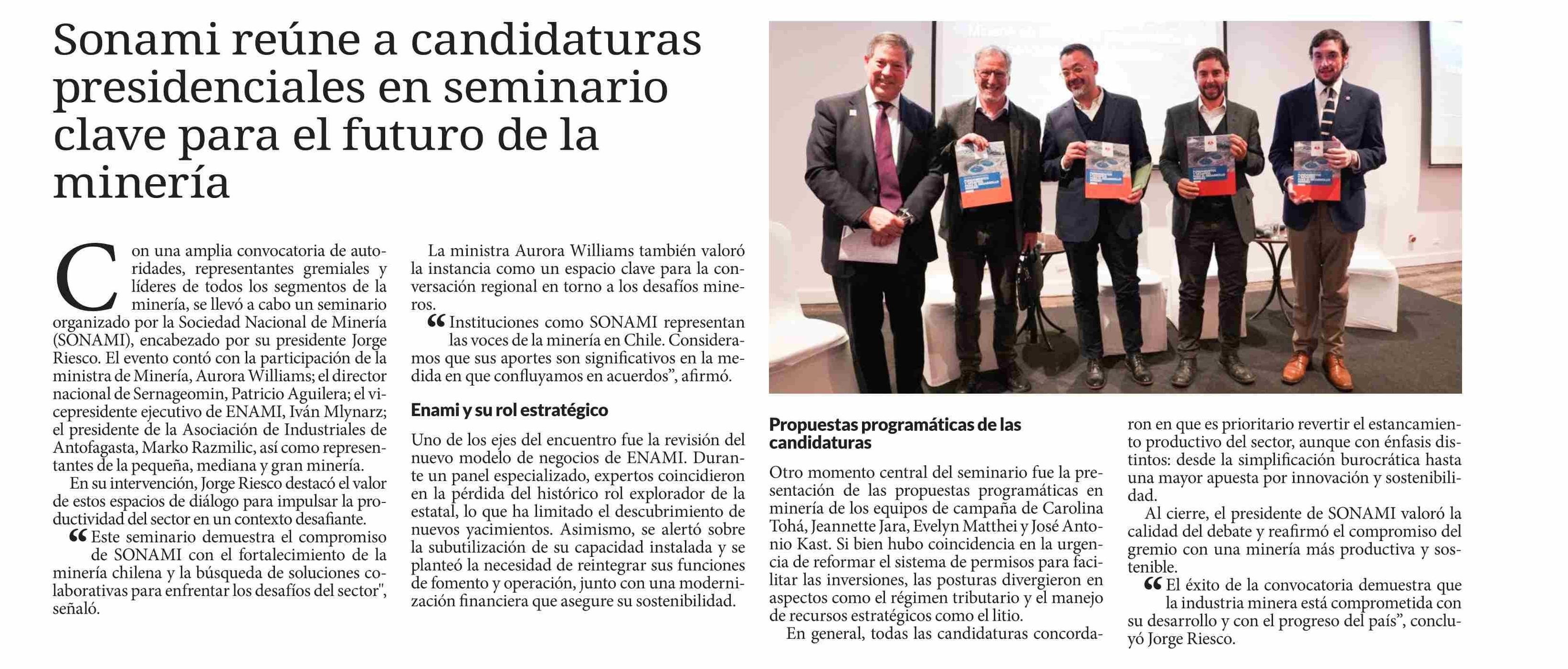 Sonami reúne a candidaturas presidenciales en seminario clave para el futuro de la minería