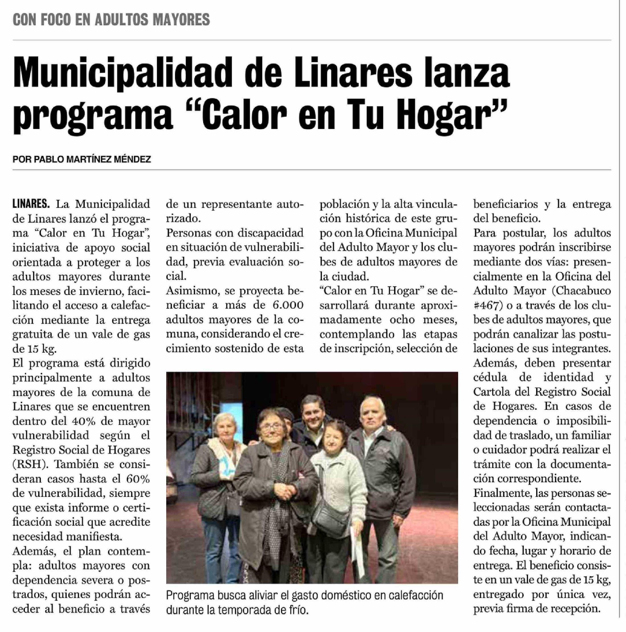 Municipalidad de Linares lanza programa "Calor en Tu Hogar"