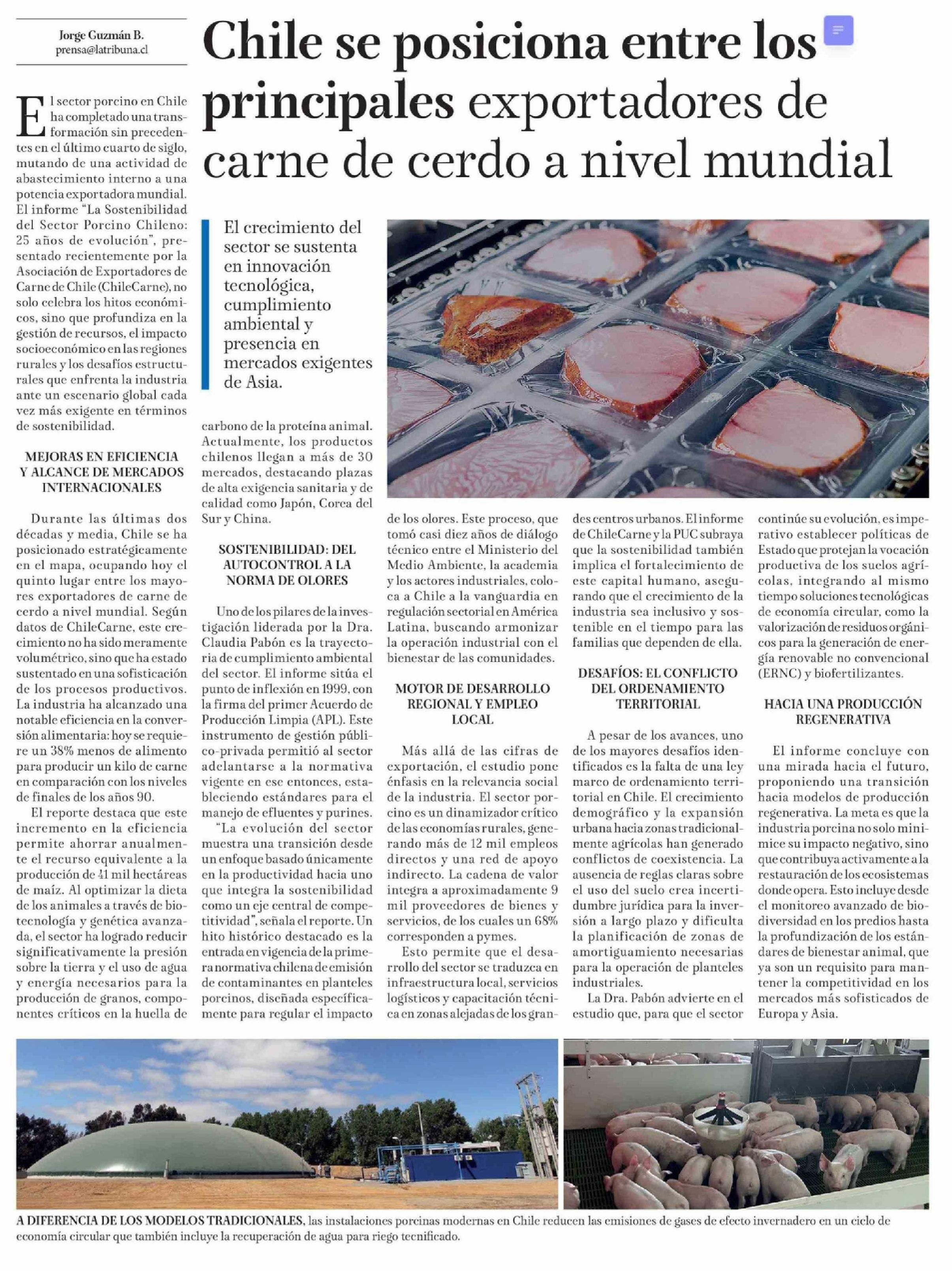 Título: Chile se posiciona entre los principales exportadores de carne de cerdo a nivel mundial