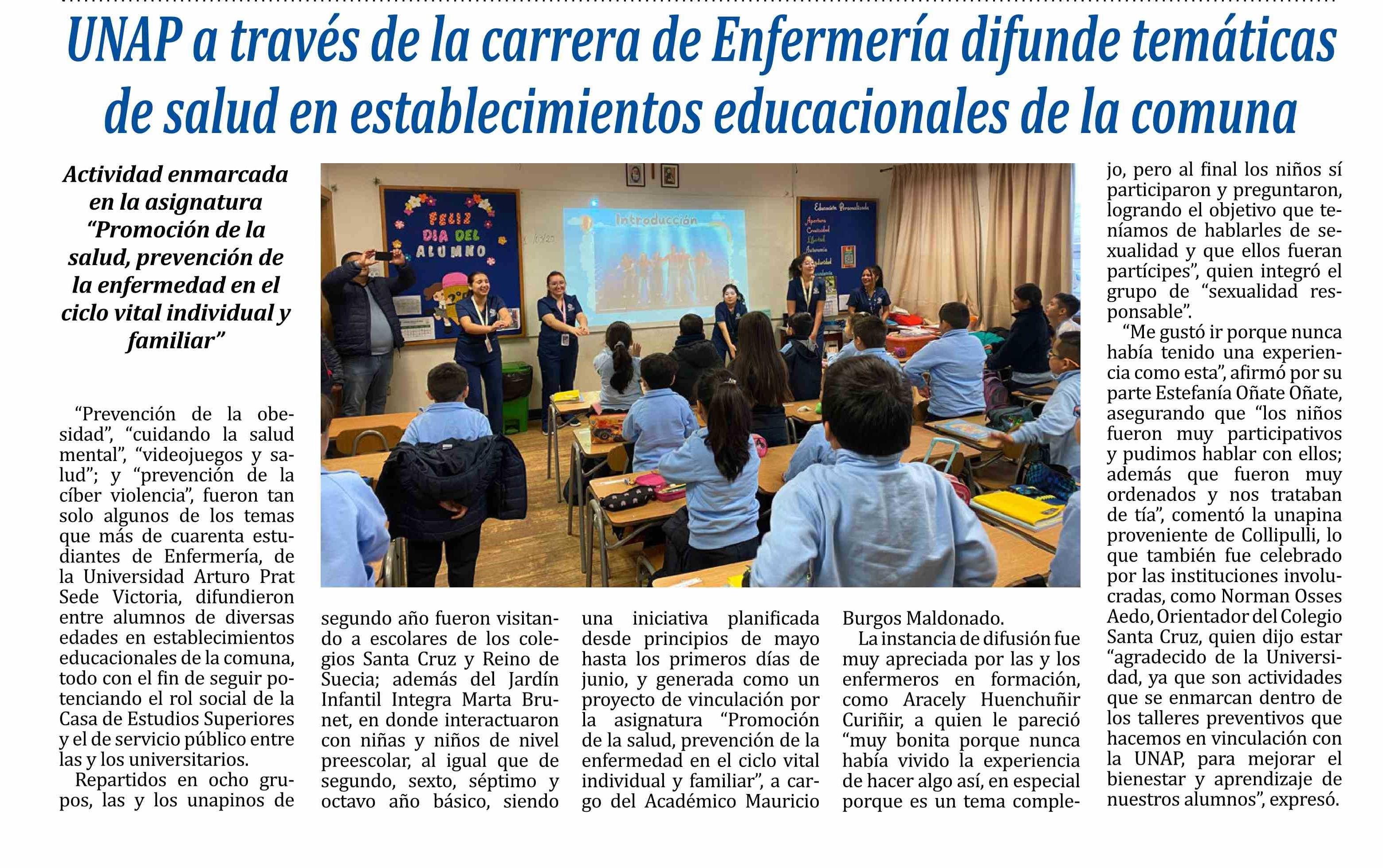 UNAP a través de la carrera de Enfermería difunde temáticas de salud en establecimientos educacionales de la comuna