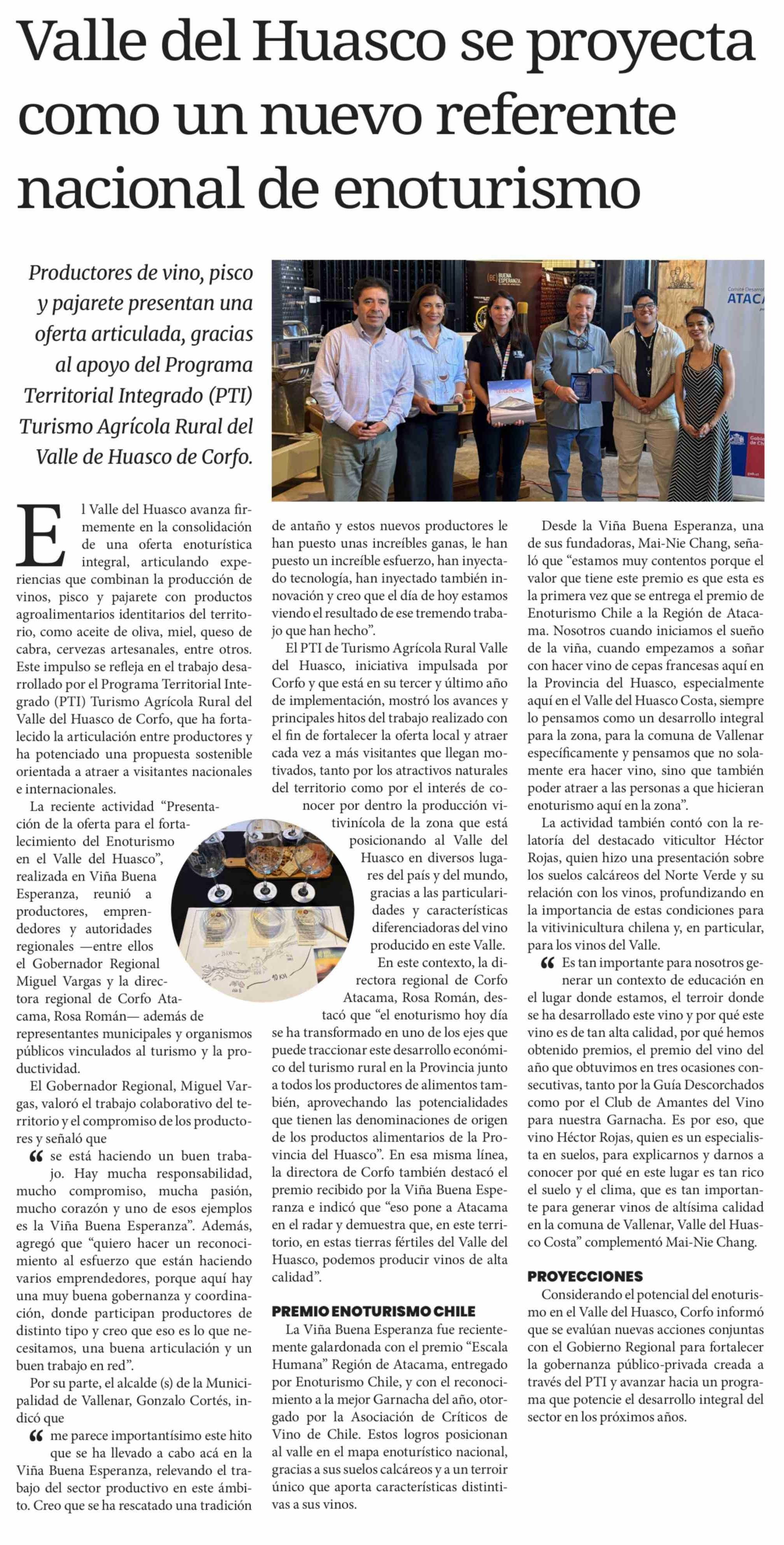 Valle del Huasco se proyecta como un nuevo referente nacional de enoturismo