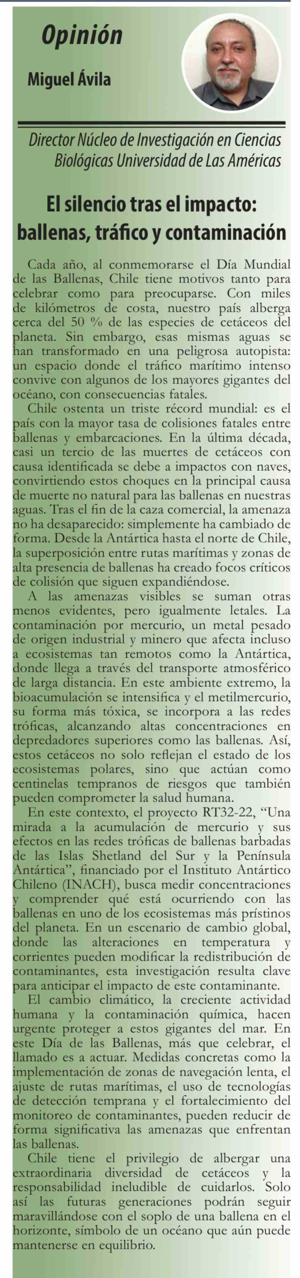 Columnas de Opinión: El silencio tras el impacto: ballenas, tráfico y contaminación