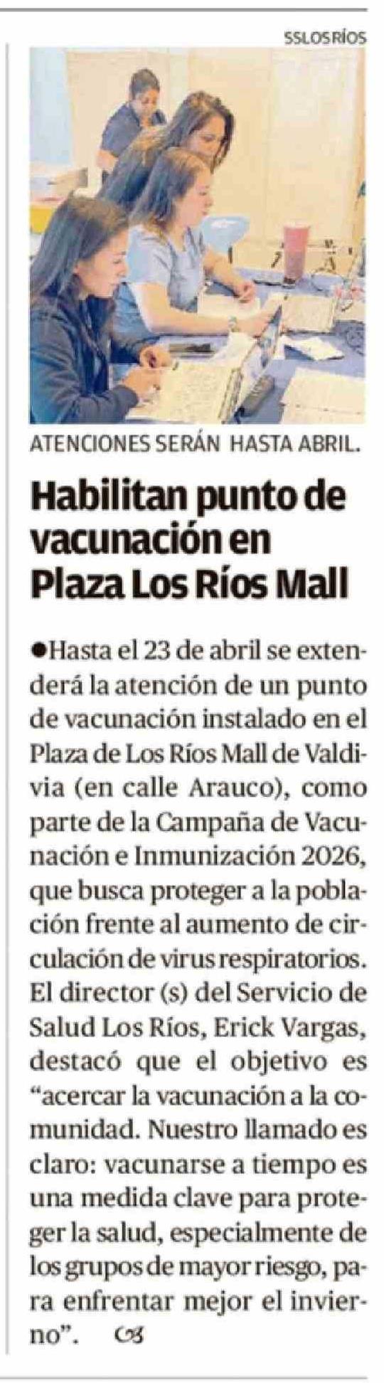 Habilitan punto de vacunación en Plaza Los Ríos Mall