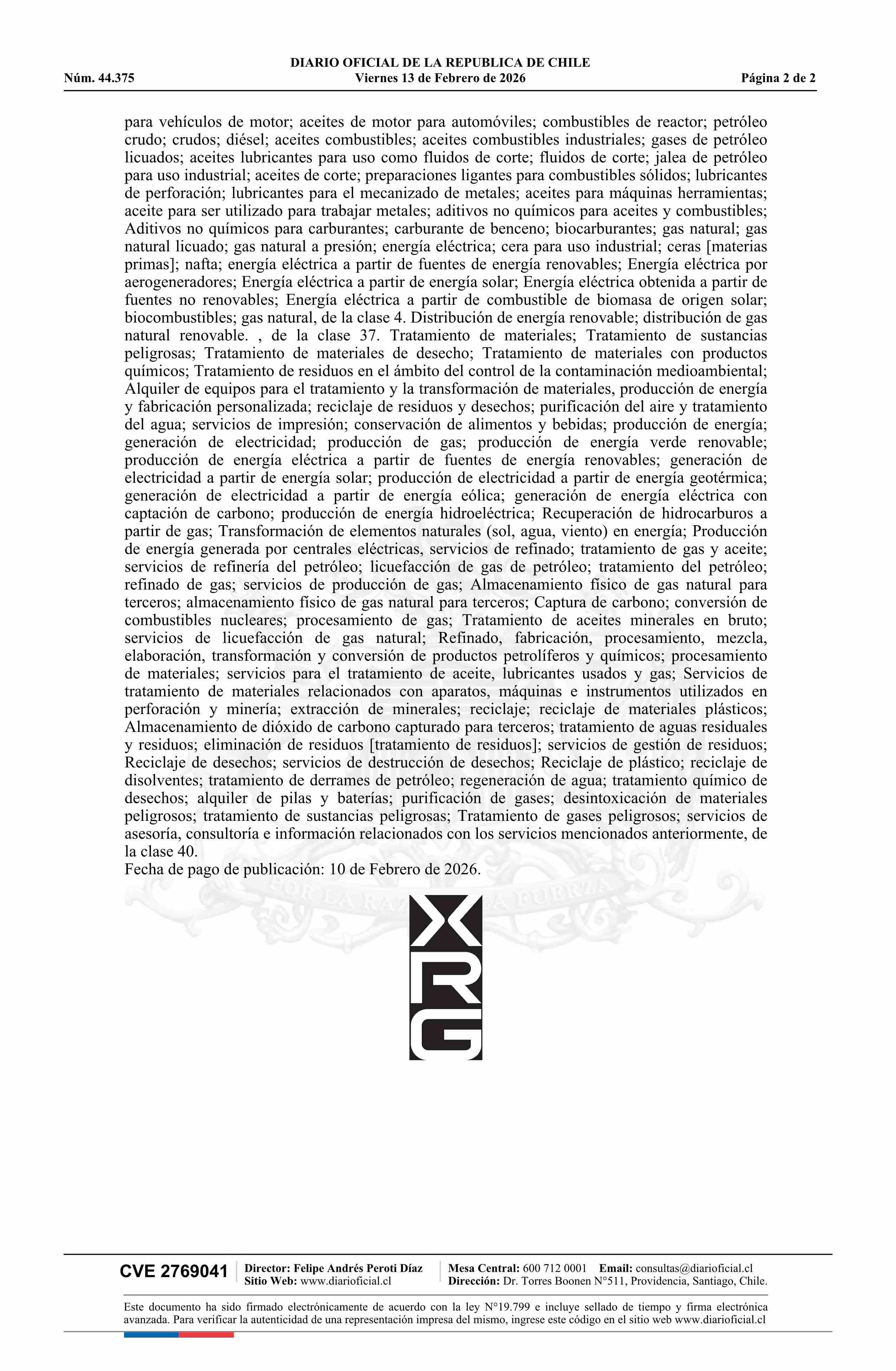 Diario Oficial Edición Electrónica (Diario Oficial de Chile - 6 Marcas Y Patentes)