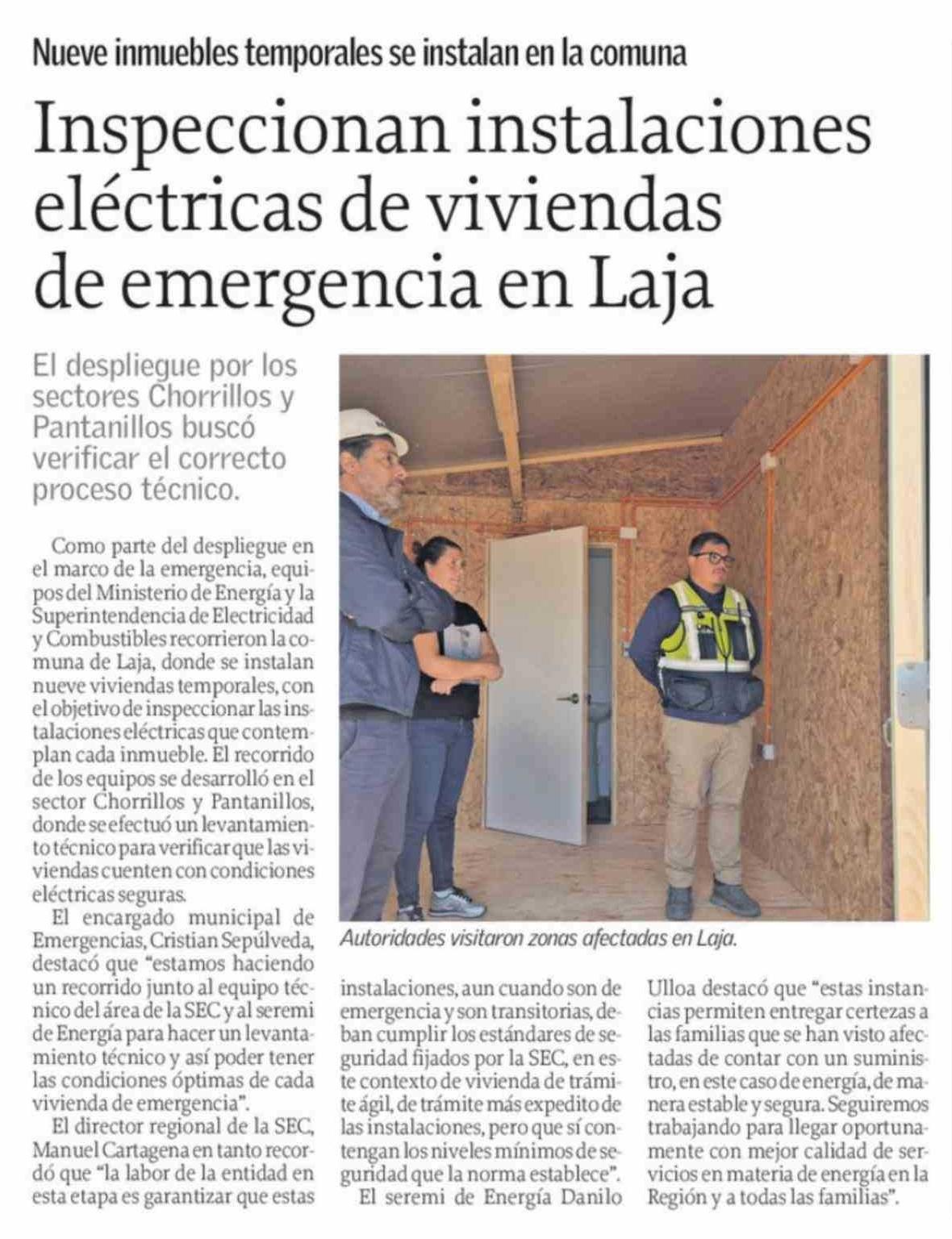 Inspeccionan instalaciones eléctricas de viviendas de emergencia en Laja