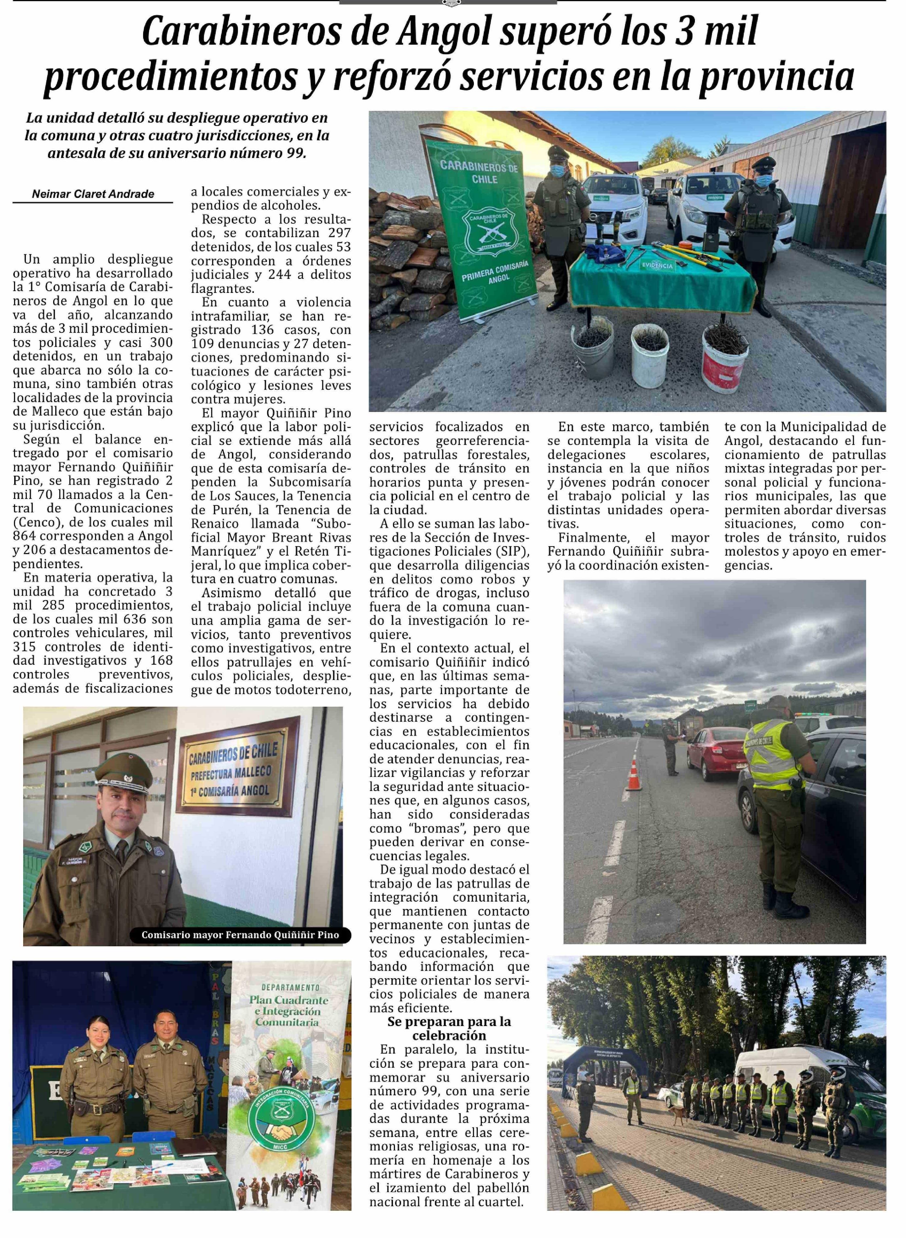 Carabineros de Angol superó los 3 mil procedimientos y reforzó servicios en la provincia