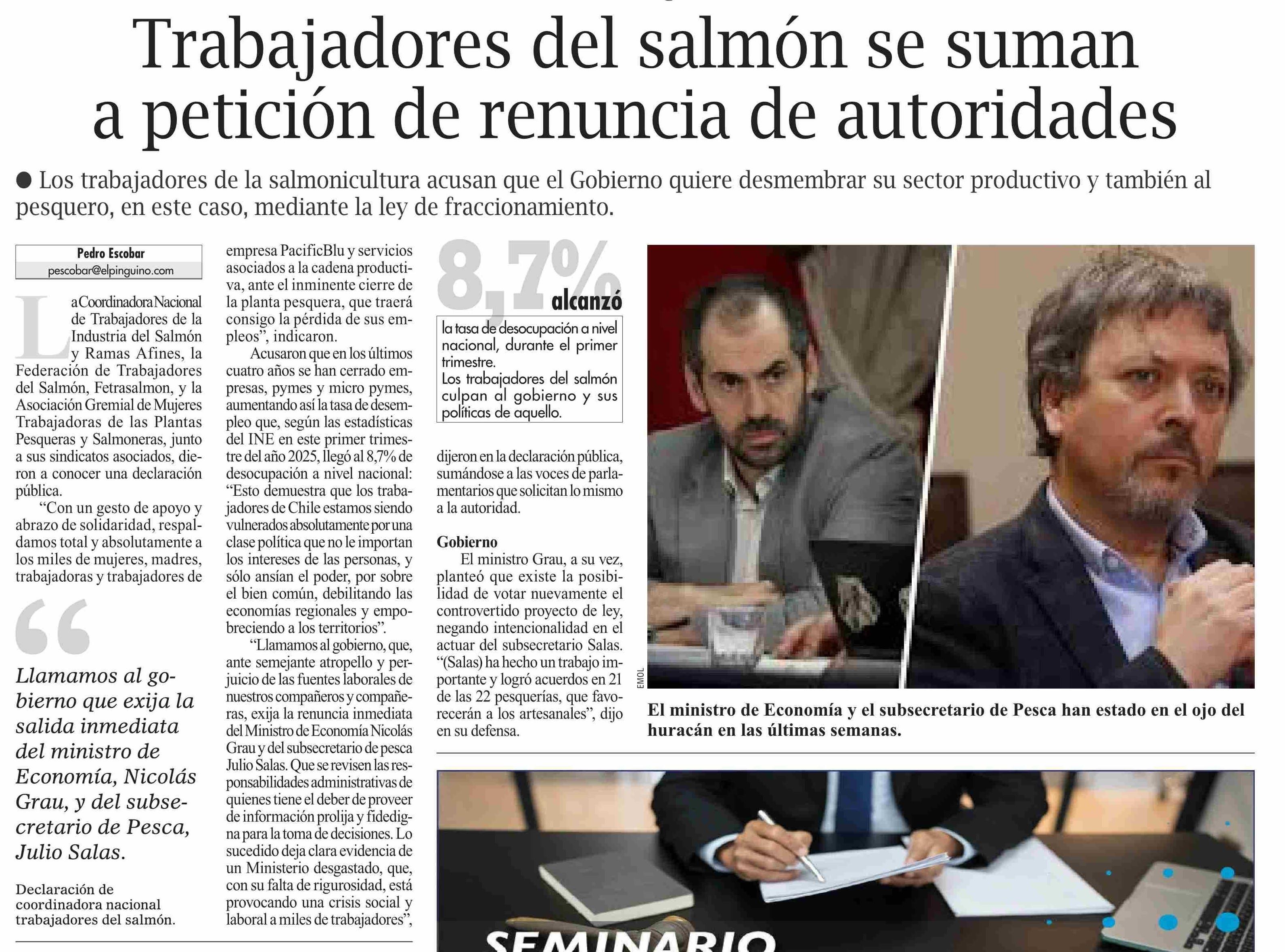 Trabajadores del salmón se suman a petición de renuncia de autoridades