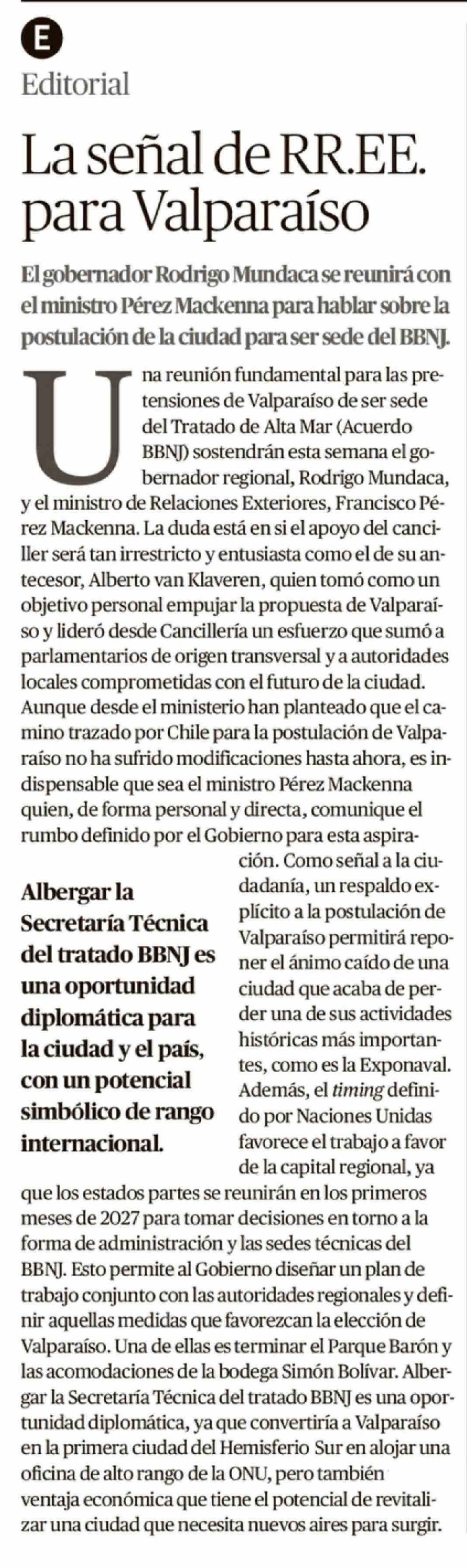 Editorial: La señal de RR.EE. para Valparaíso