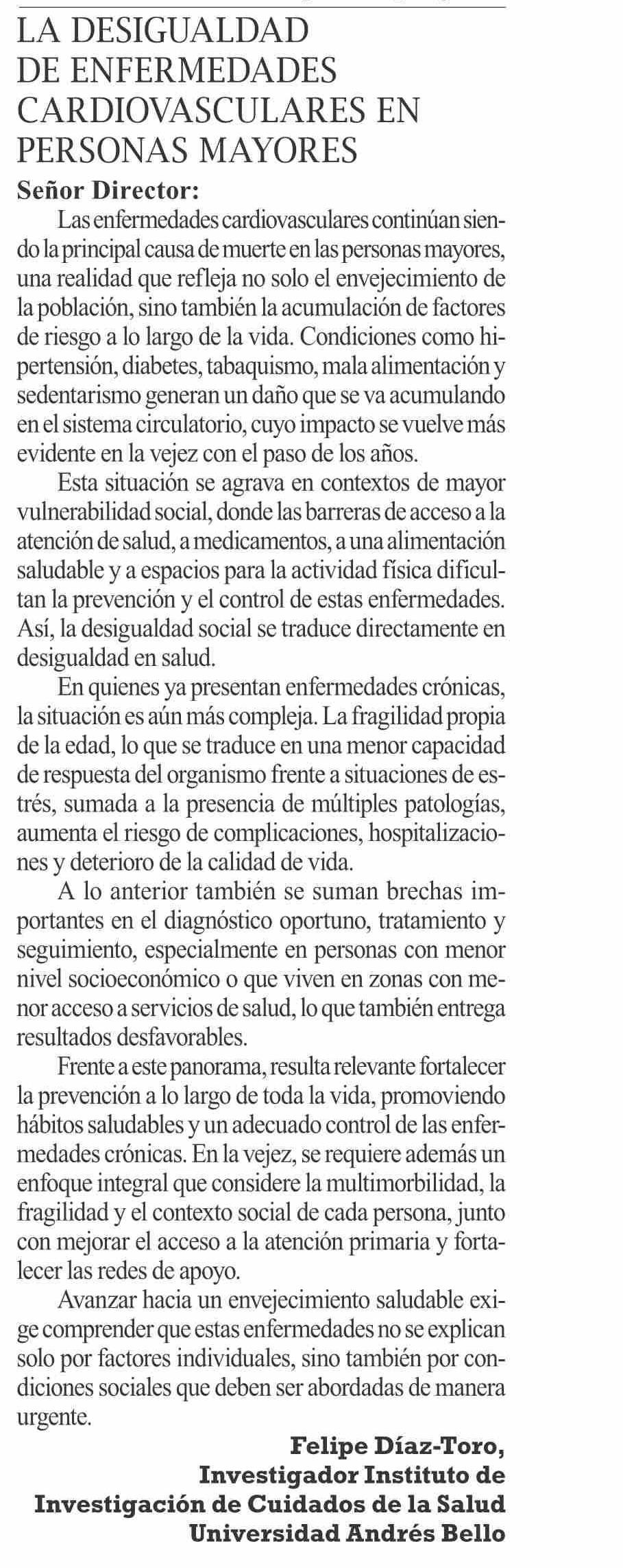 CARTAS: LA DESIGUALDAD DE ENFERMEDADES CARDIOVASCULARES EN PERSONAS MAYORES