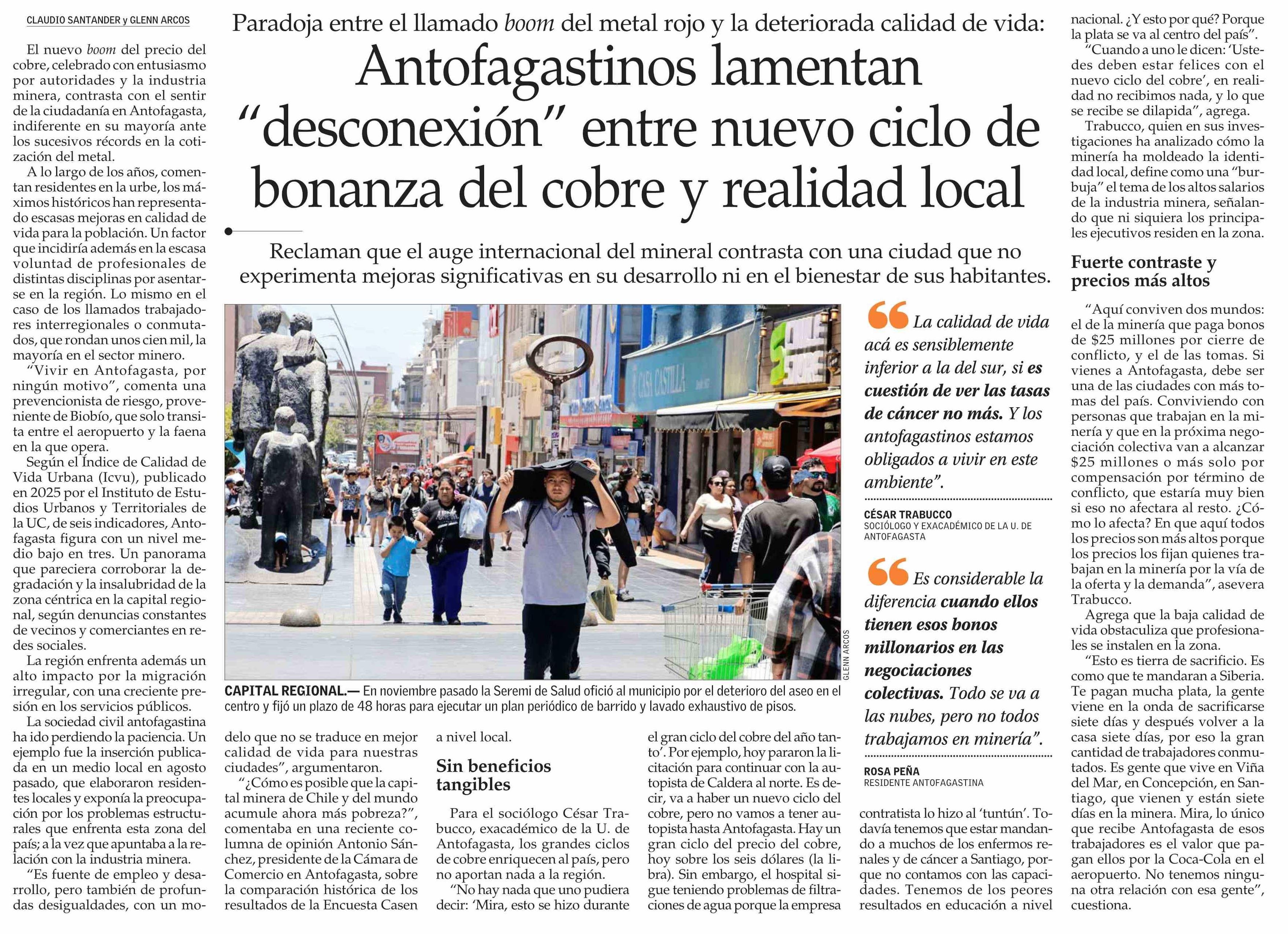 Antofagastinos lamentan “desconexión” entre nuevo ciclo de bonanza del cobre y realidad local