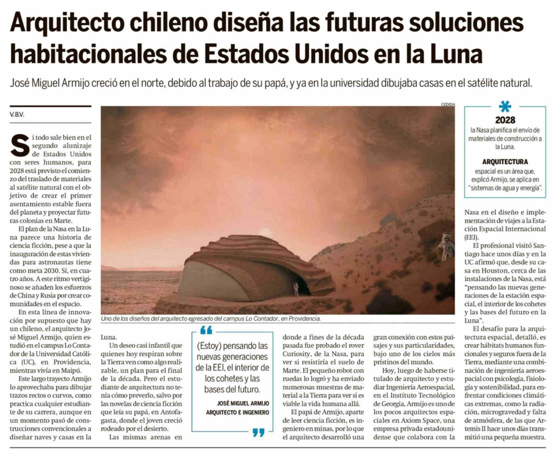 Arquitecto chileno diseña las futuras soluciones habitacionales de Estados Unidos en la Luna