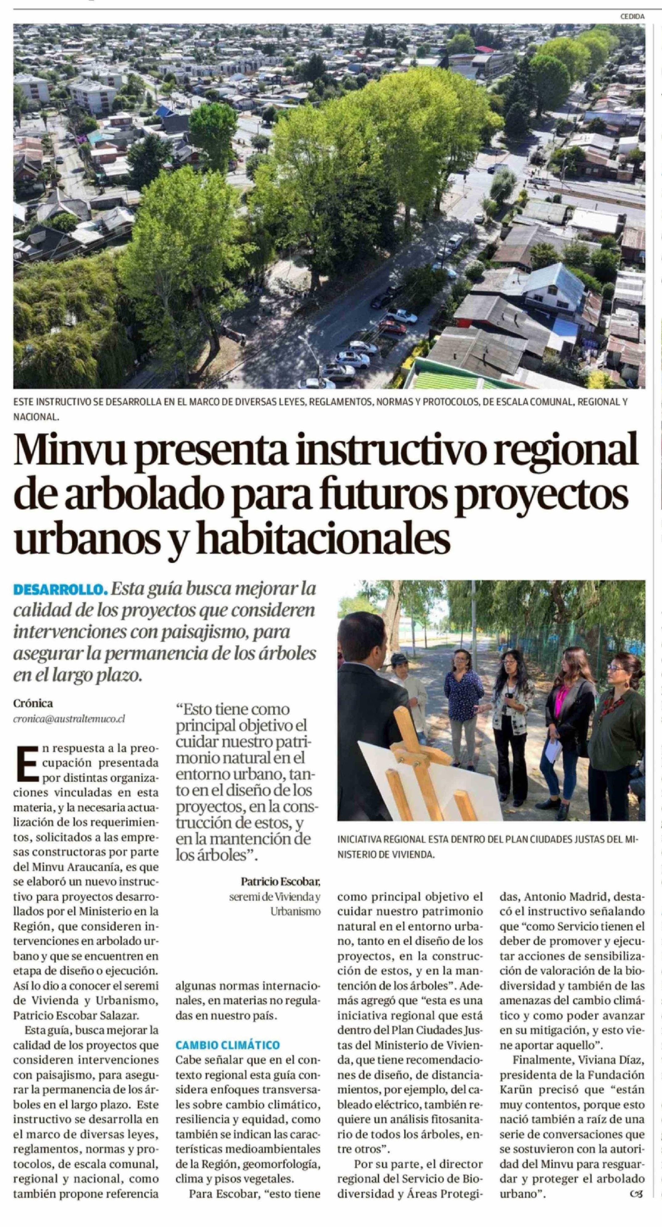 Minvu presenta instructivo regional de arbolado para futuros proyectos urbanos y habitacionales
