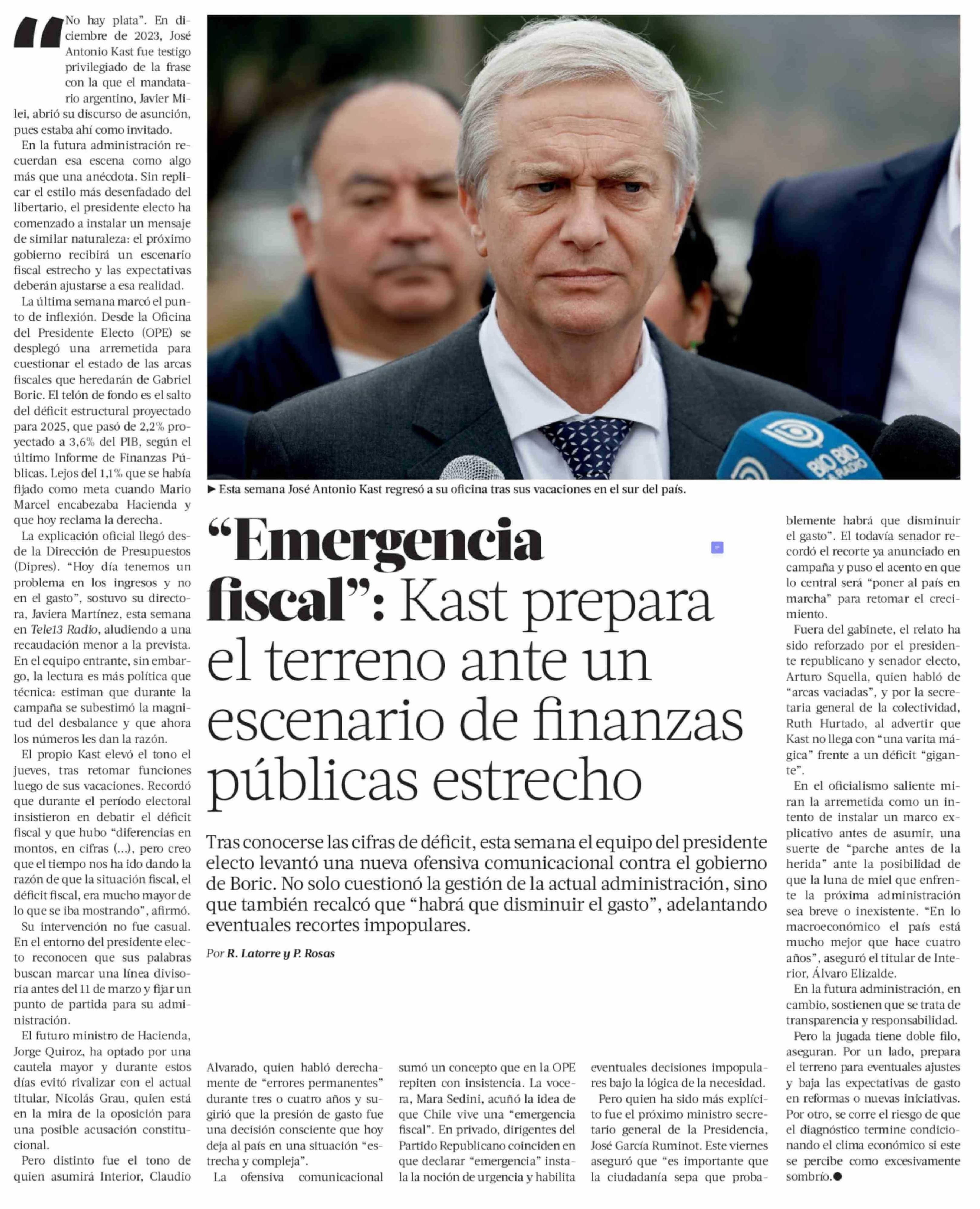 "Emergencia fiscal": Kast prepara el terreno ante un escenario de finanzas públicas estrecho