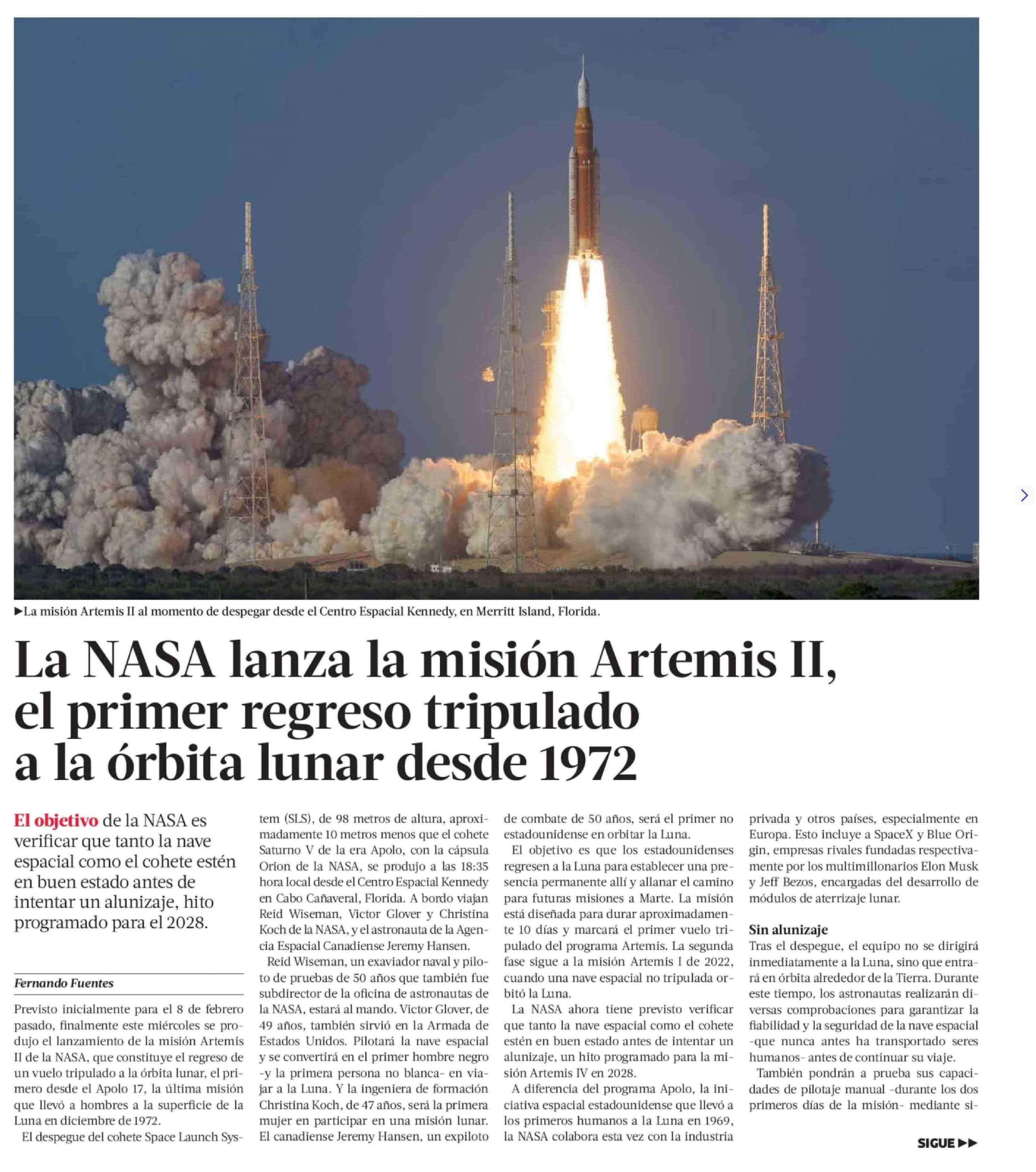 La NASA lanza la misión Artemis II, el primer regreso tripulado a la órbita lunar desde 1972