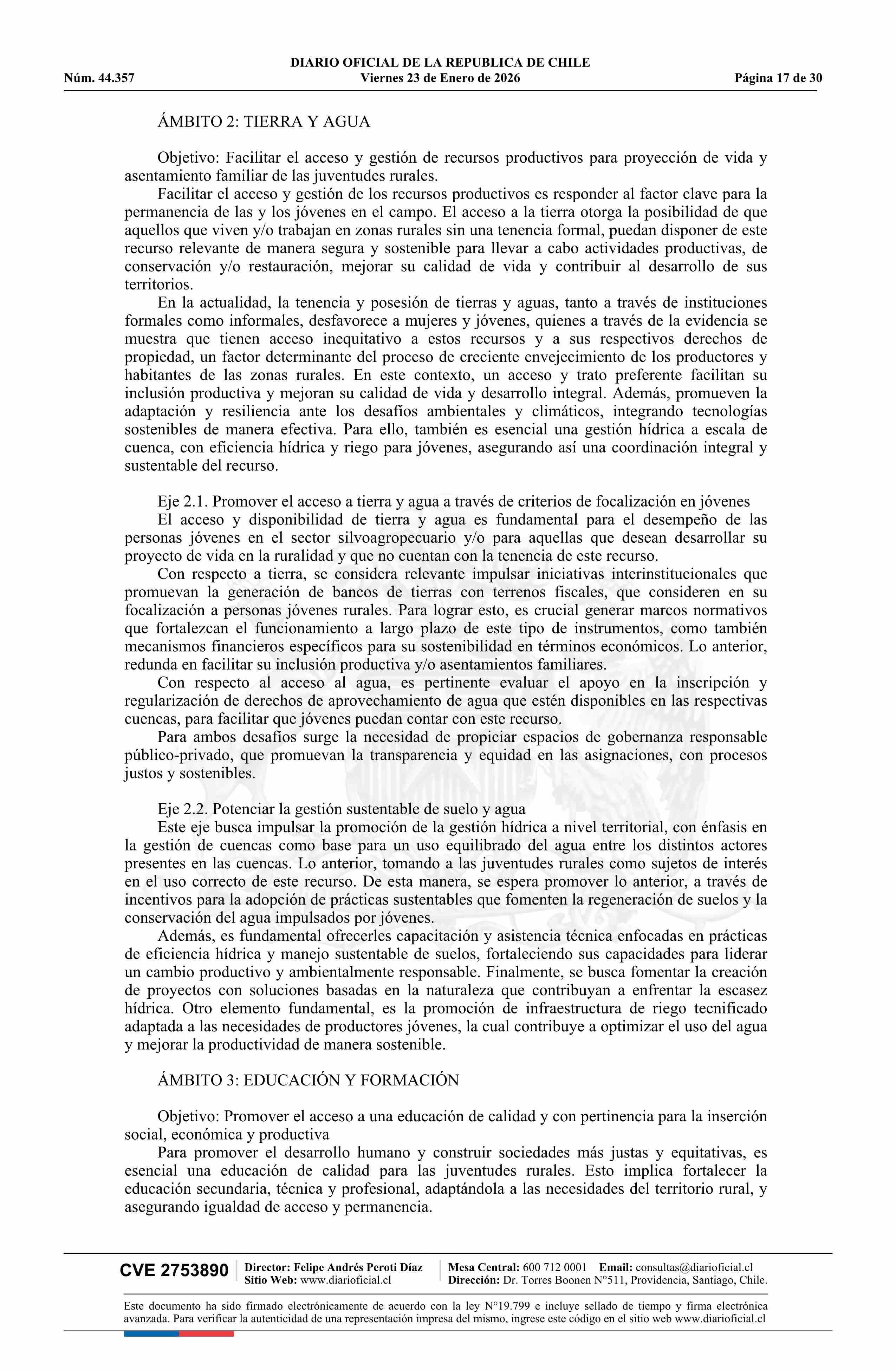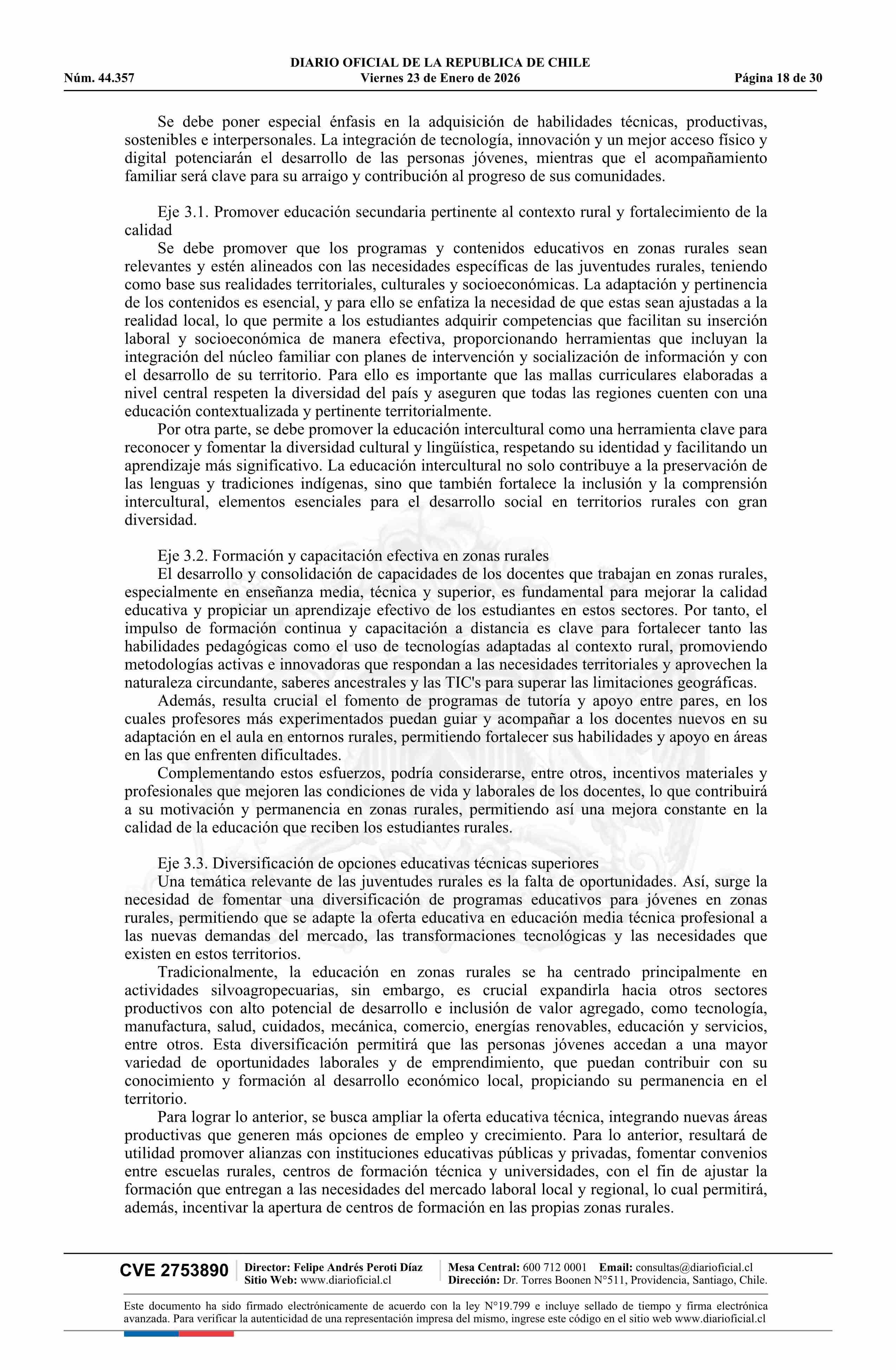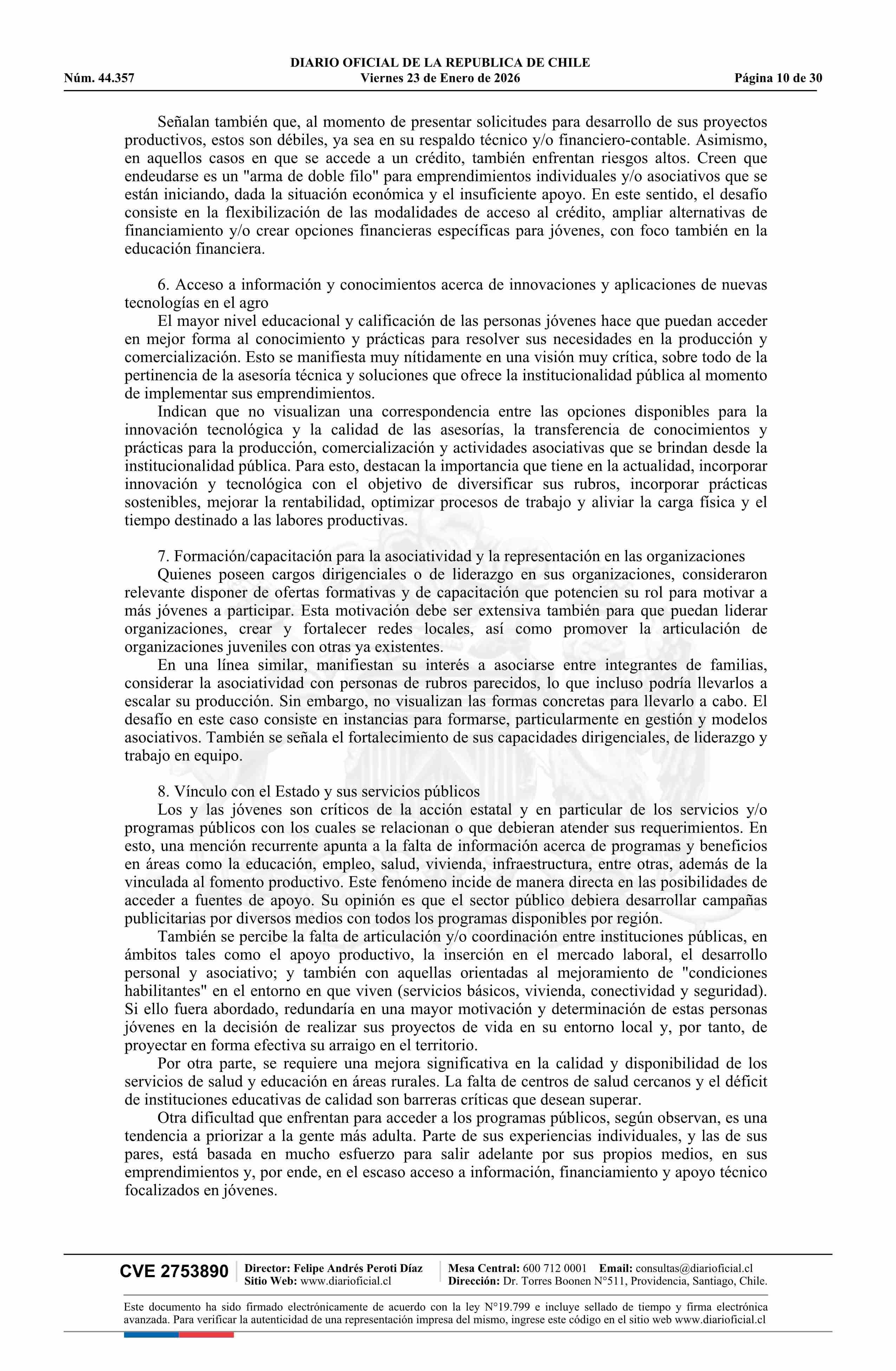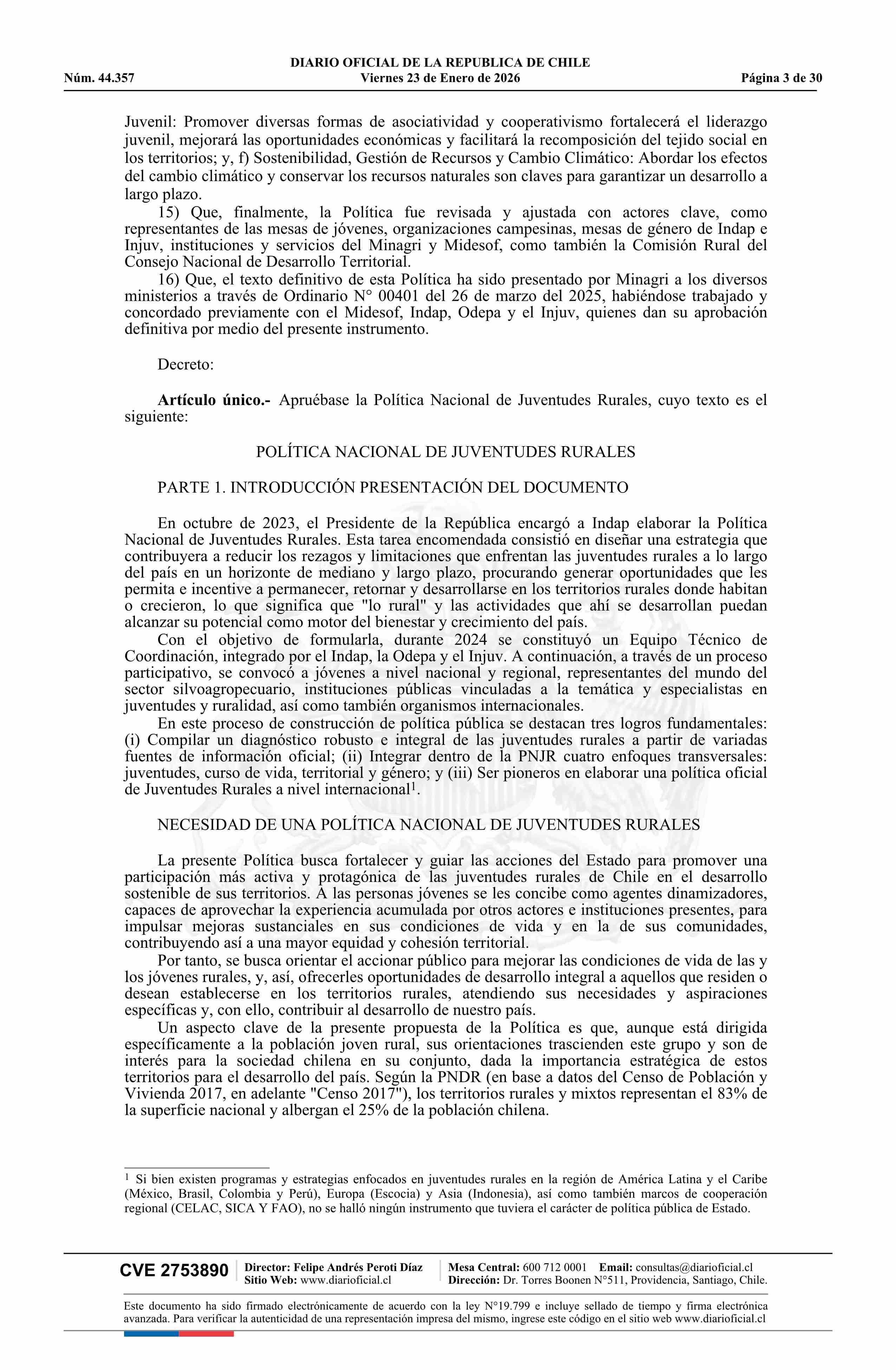 | Título: | Decreto número 18, de 2025.- Aprueba Política Nacional de Juventudes Rurales |