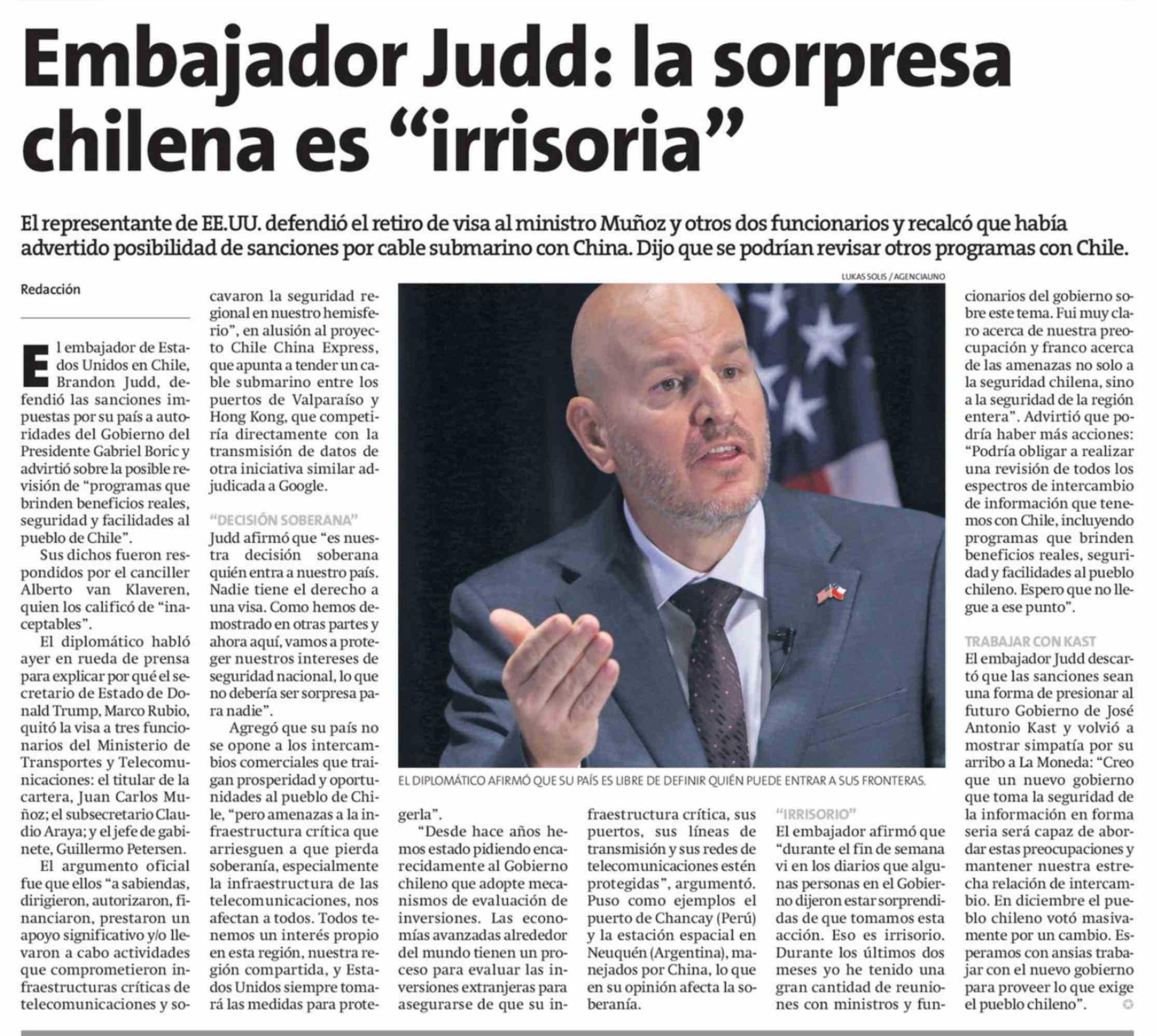 Embajador Judd: la sorpresa chilena es "irrisoria"