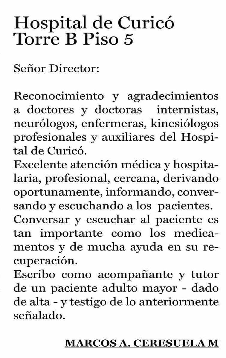 Cartas: Hospital de Curicó Torre B Piso 5