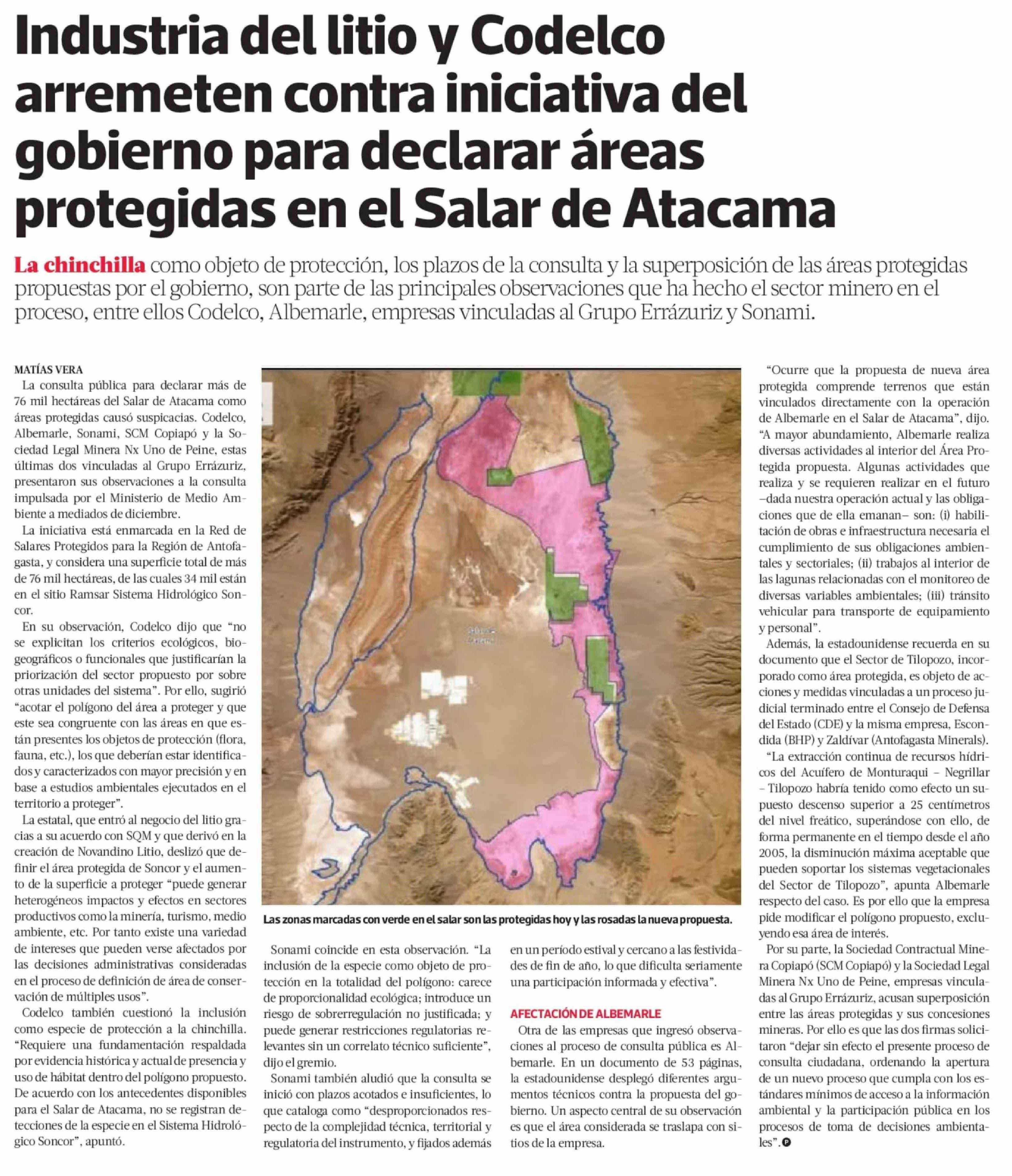 Industria del litio y Codelco arremeten contra iniciativa del gobierno para declarar áreas protegidas en el Salar de Atacama
