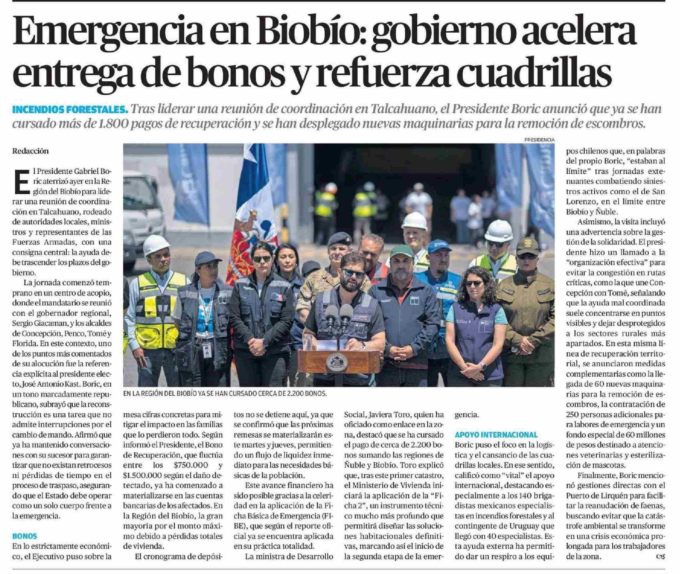 Emergencia en Biobío: gobierno acelera entrega de bonos y refuerza cuadrillas