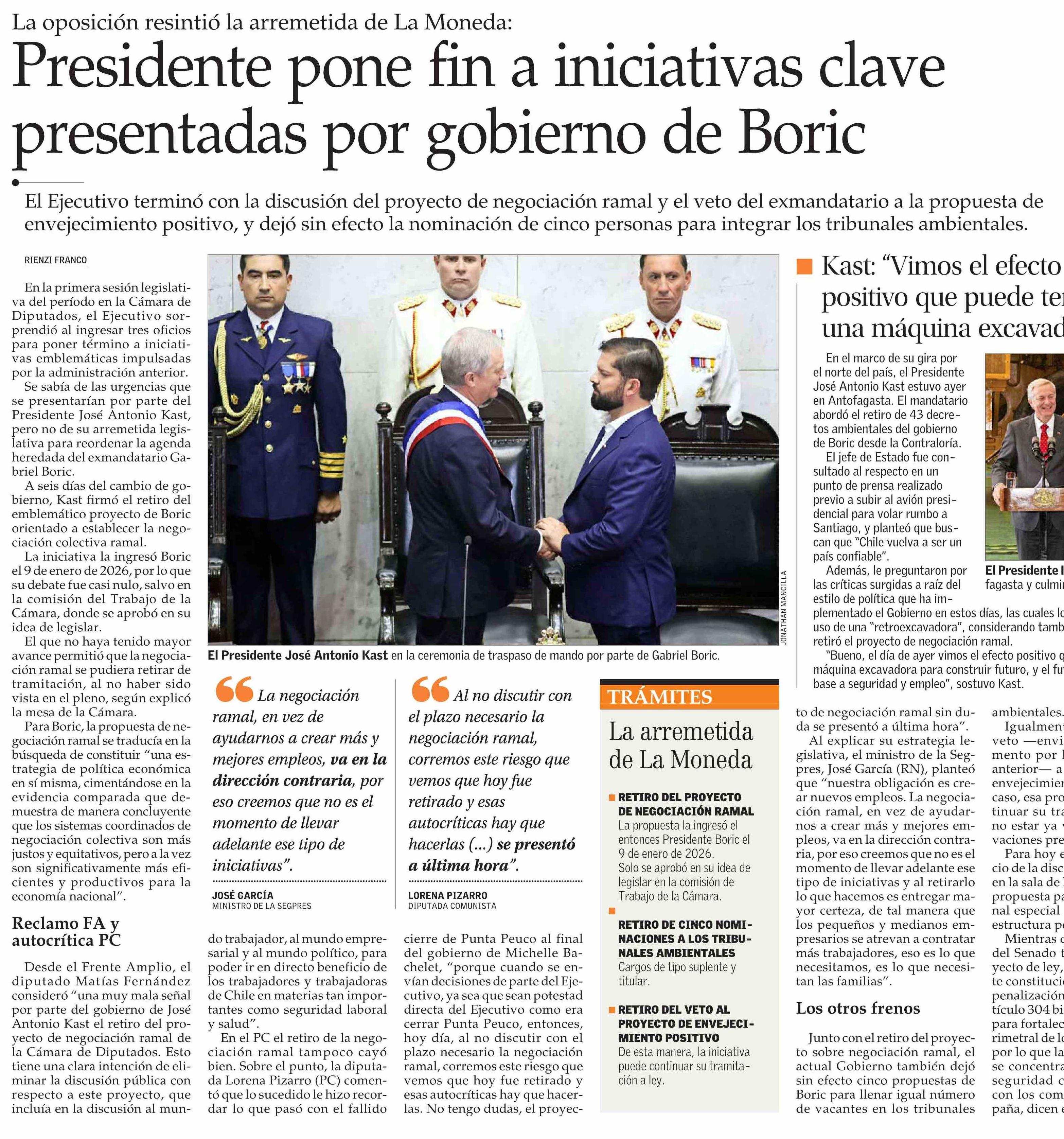 Presidente pone fin a iniciativas clave presentadas por gobierno de Boric