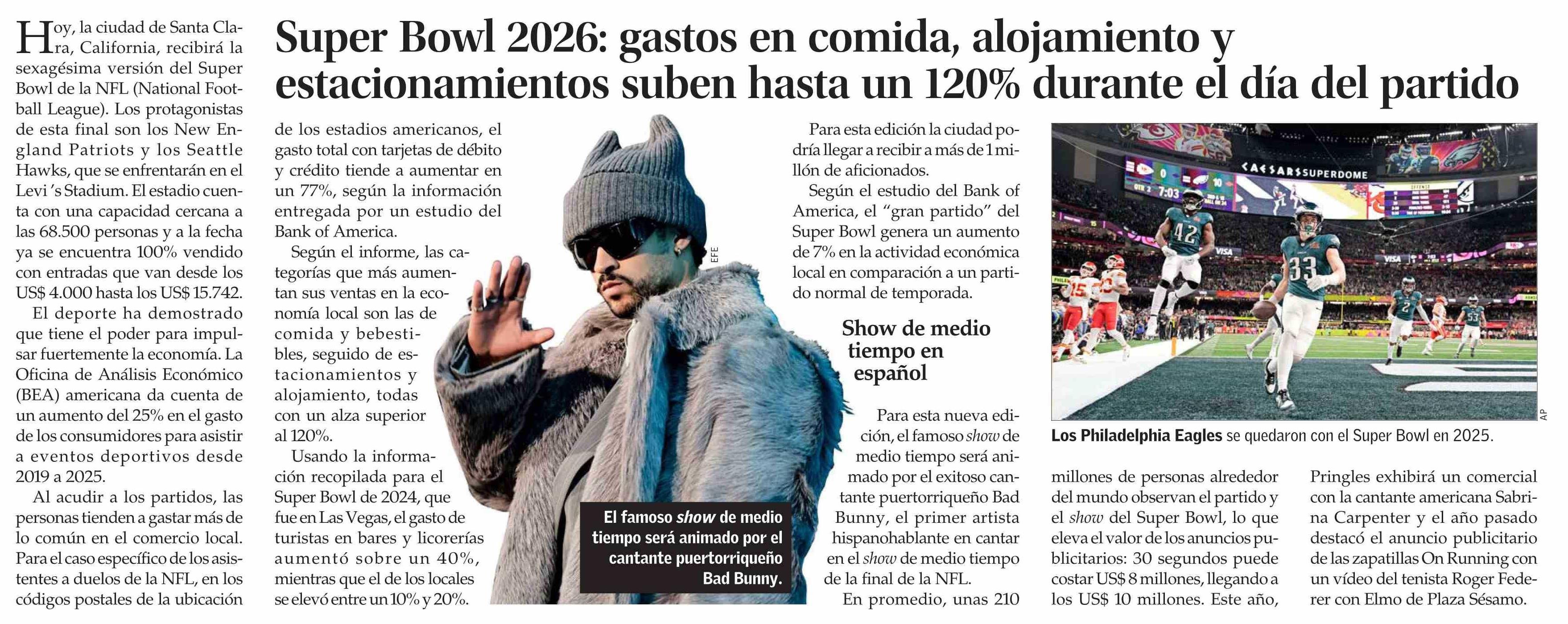 Super Bowl 2026: gastos en comida, alojamiento y estacionamientos suben hasta un 120% durante el día del partido
