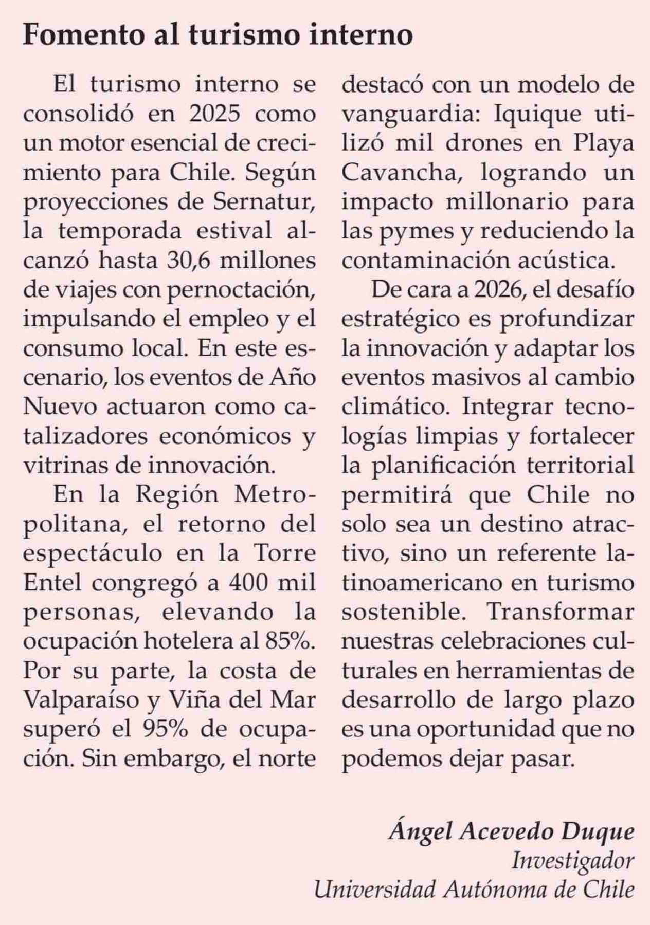 Cartas: Fomento al turismo interno