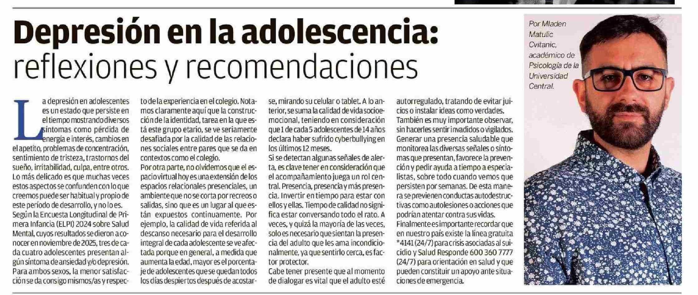 Depresión en la adolescencia: reflexiones y recomendaciones