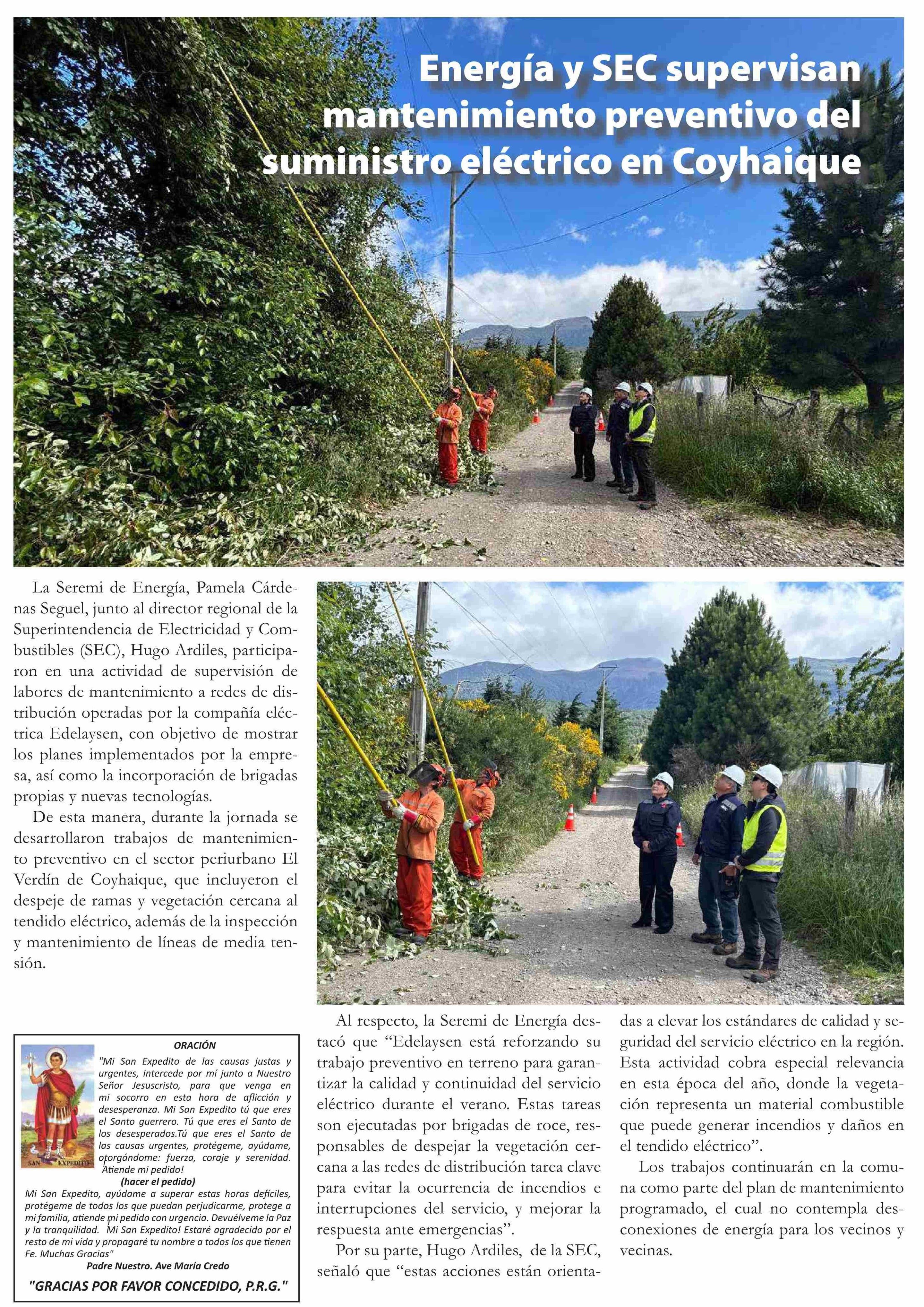 Energía y SEC supervisan mantenimiento preventivo del suministro eléctrico en Coyhaique