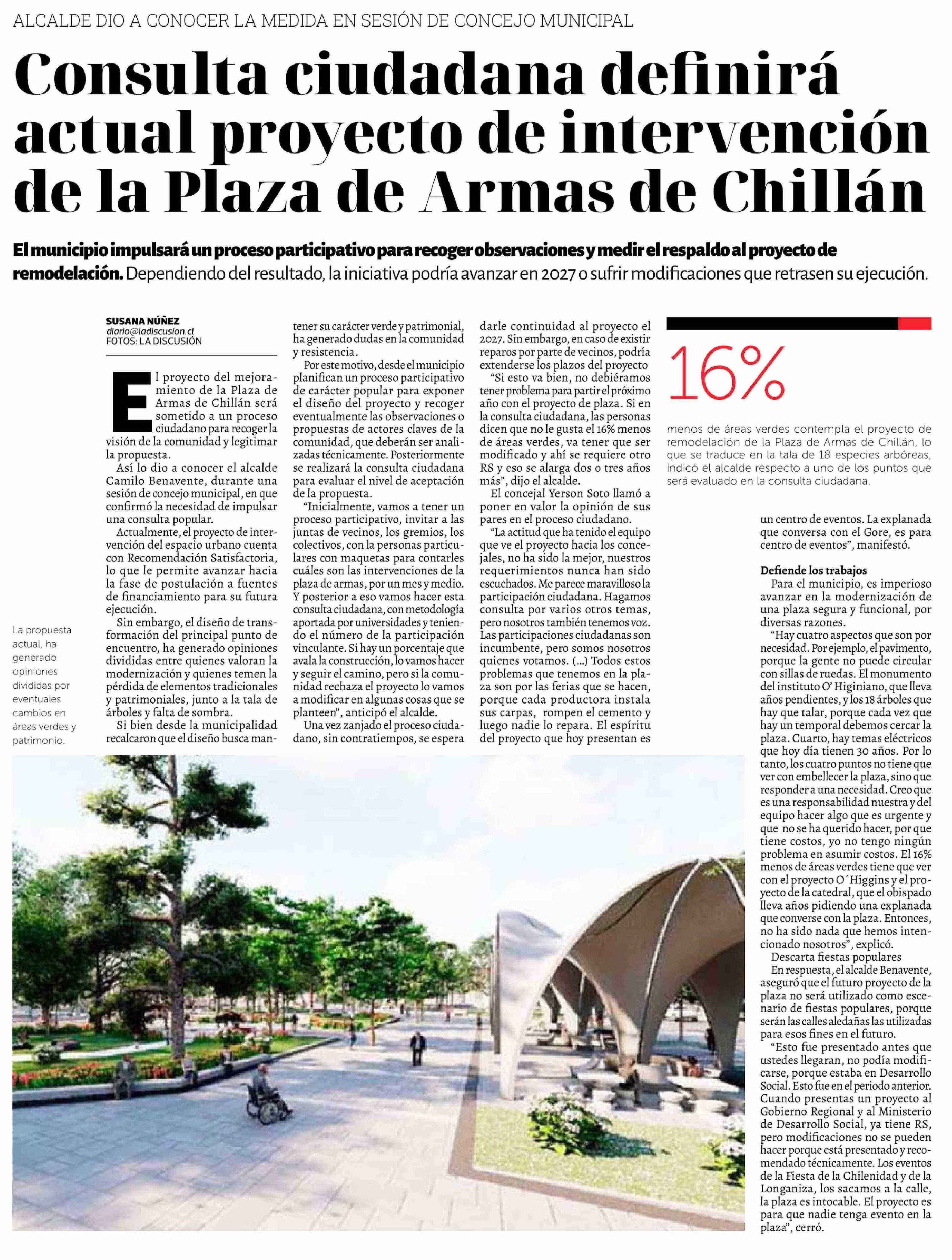 Consulta ciudadana definirá actual proyecto de intervención de la Plaza de Armas de Chillán