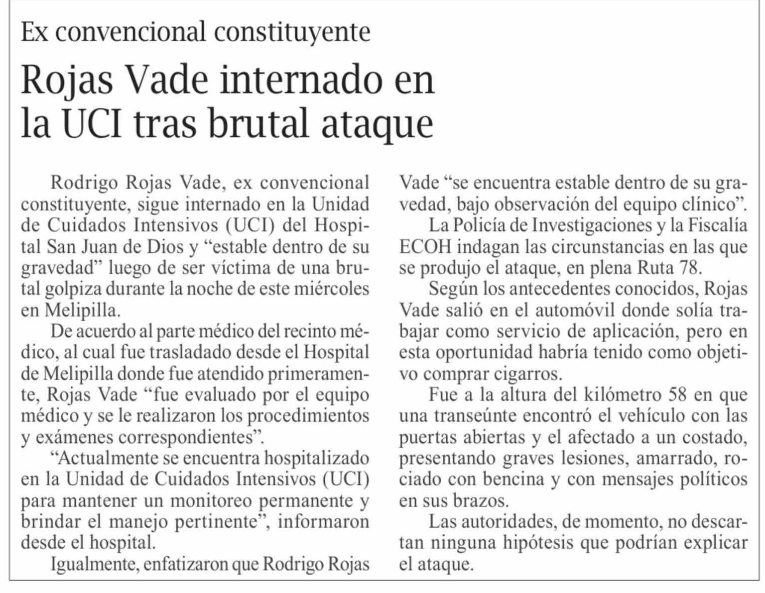 Rojas Vade internado en la UCI tras brutal ataque