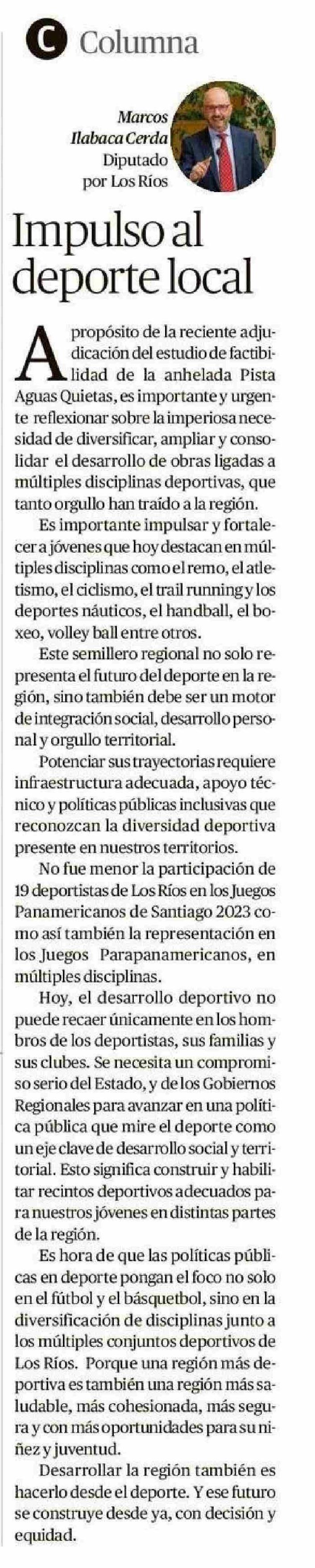 COLUMNAS DE OPINIÓN: Impulso al deporte local