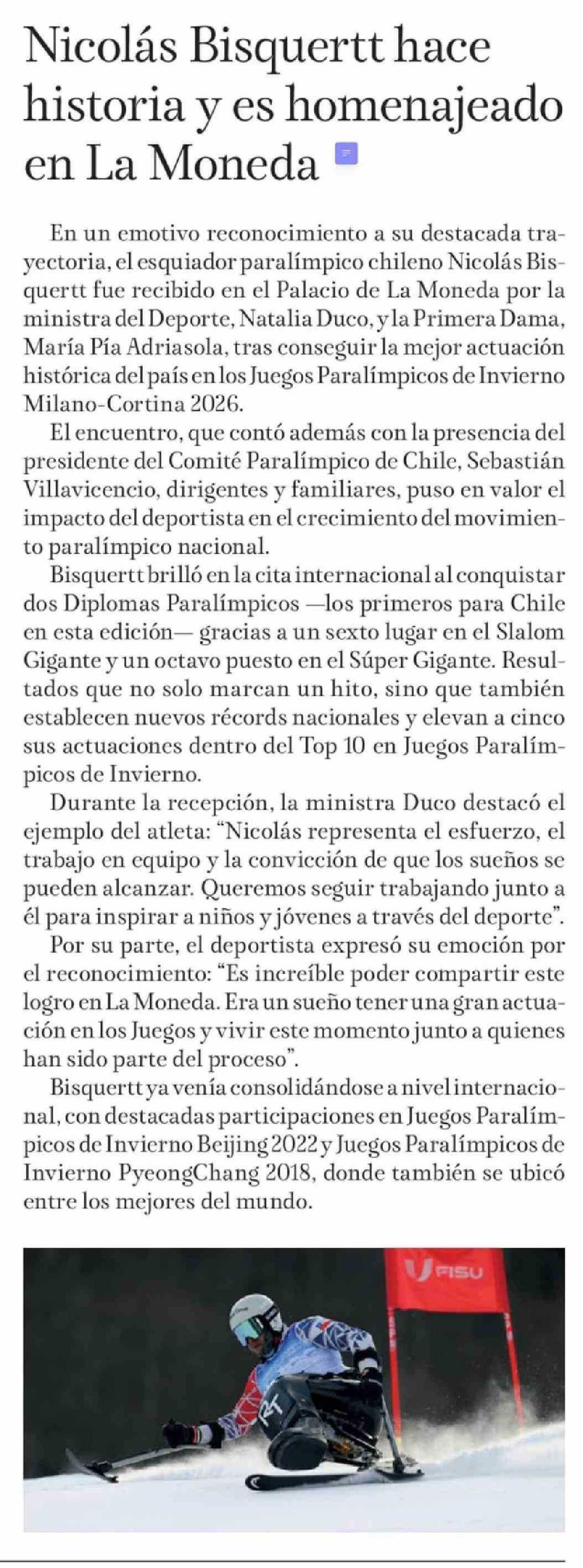 Nicolás Bisquertt hace historia y es homenajeado en La Moneda