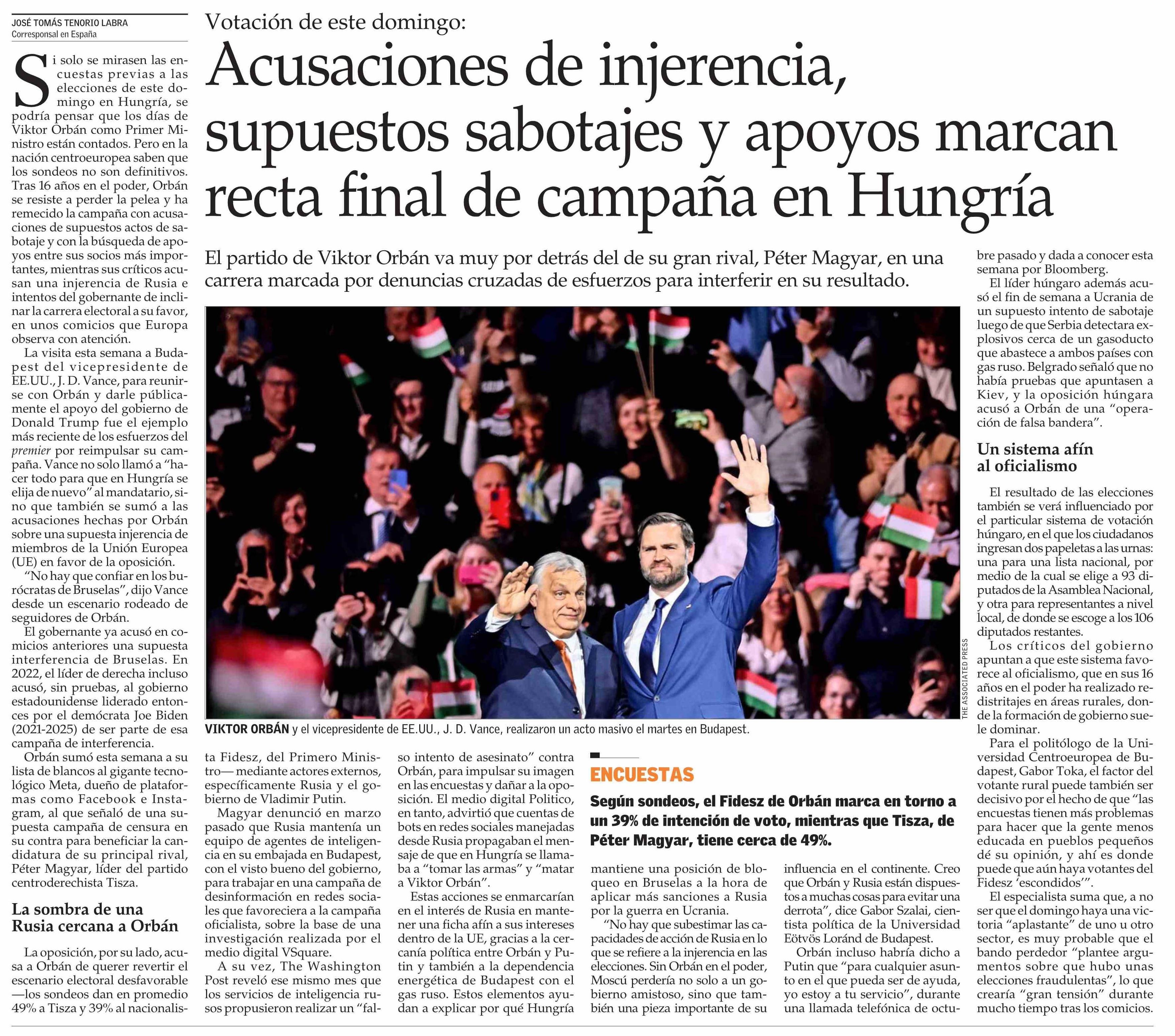 Acusaciones de injerencia, supuestos sabotajes y apoyos marcan recta final de campaña en Hungría