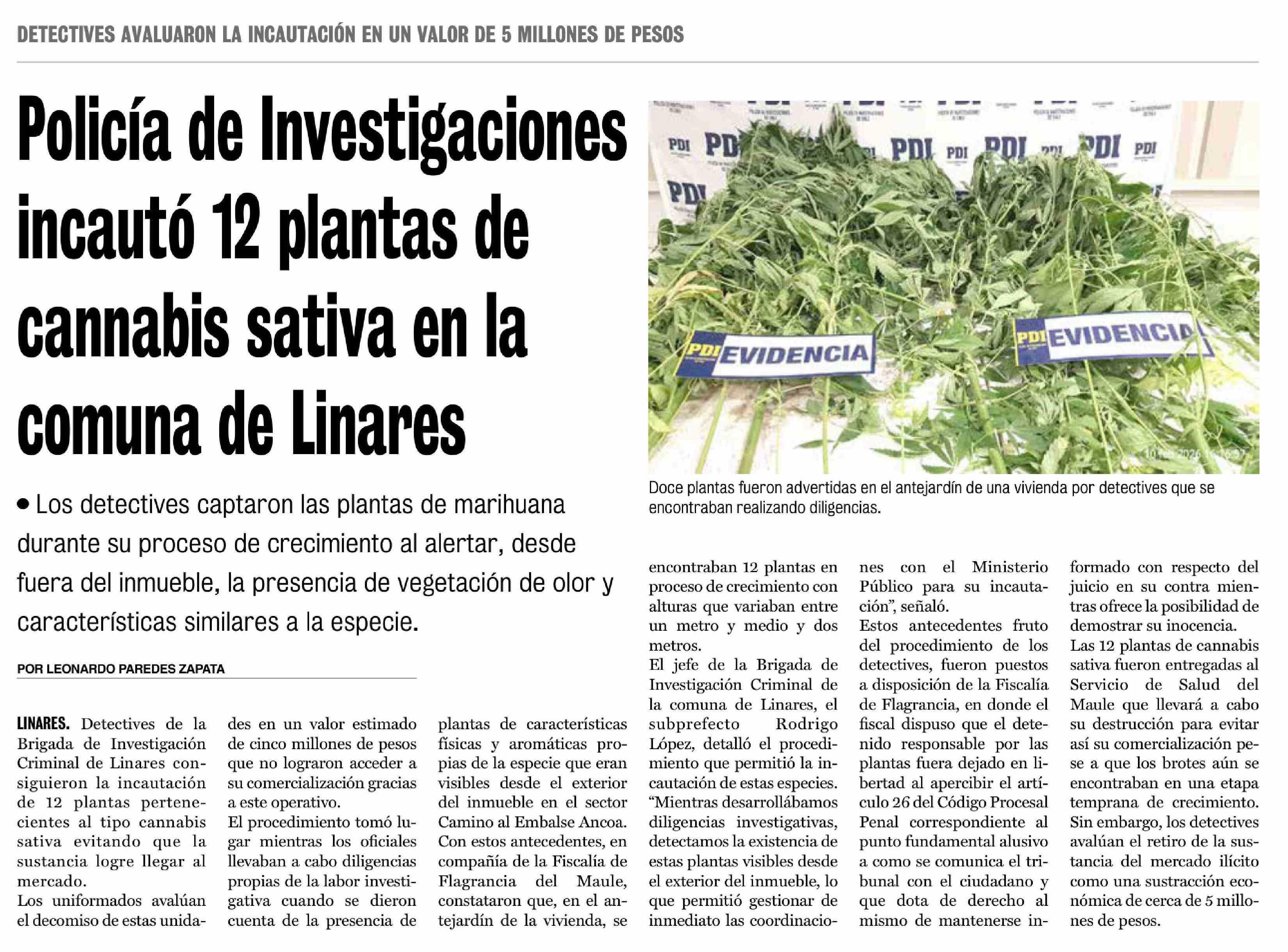 Policía de Investigaciones incauto 12 plantas de cannabis sativa en la comuna de Linares