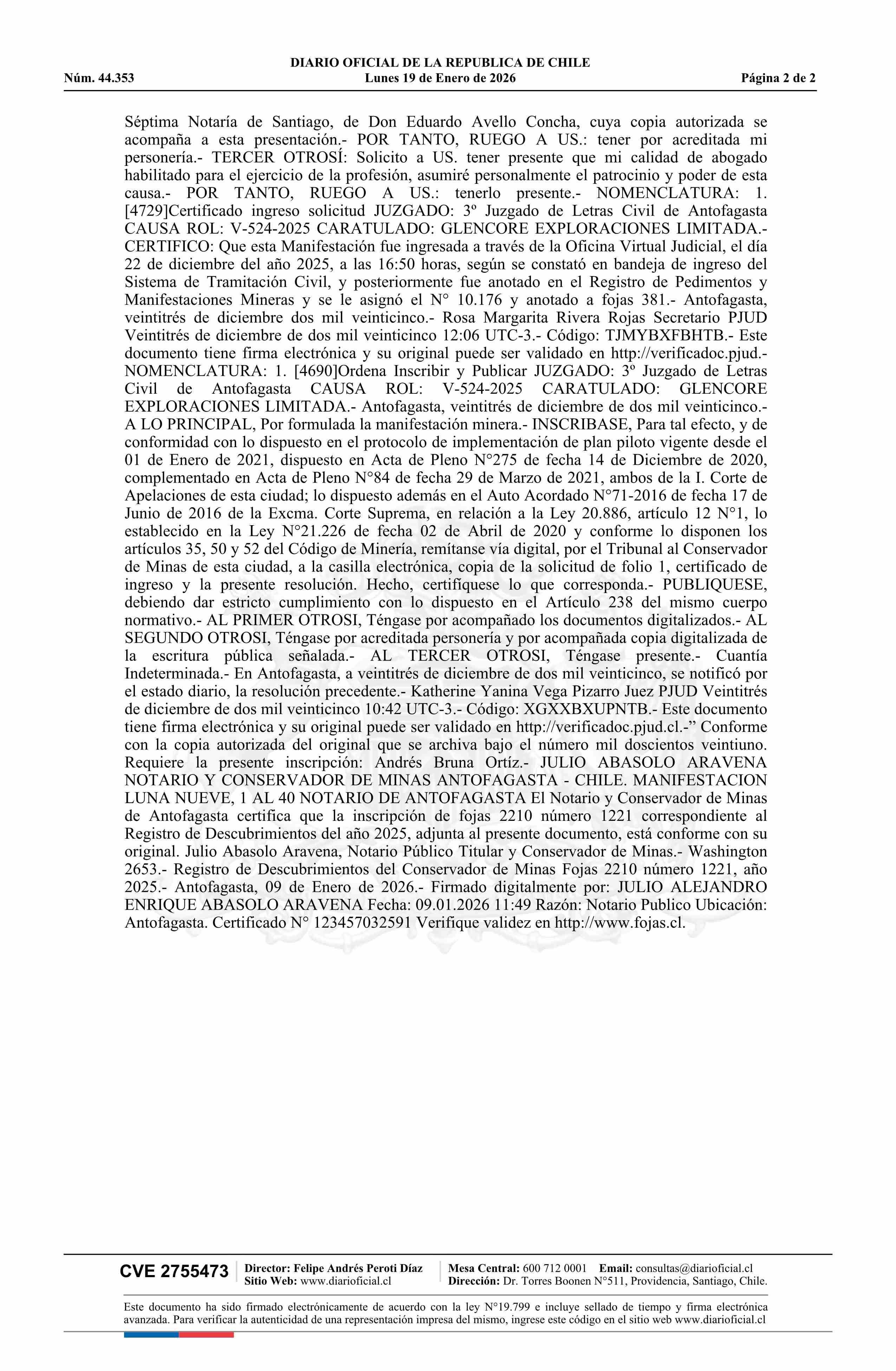 DIARIO OFICIAL CHILE - BOLETÍN OFICIAL DE MINERÍA (DIARIO OFICIAL CHILE – BOM – MANIFESTACIONES MIN)