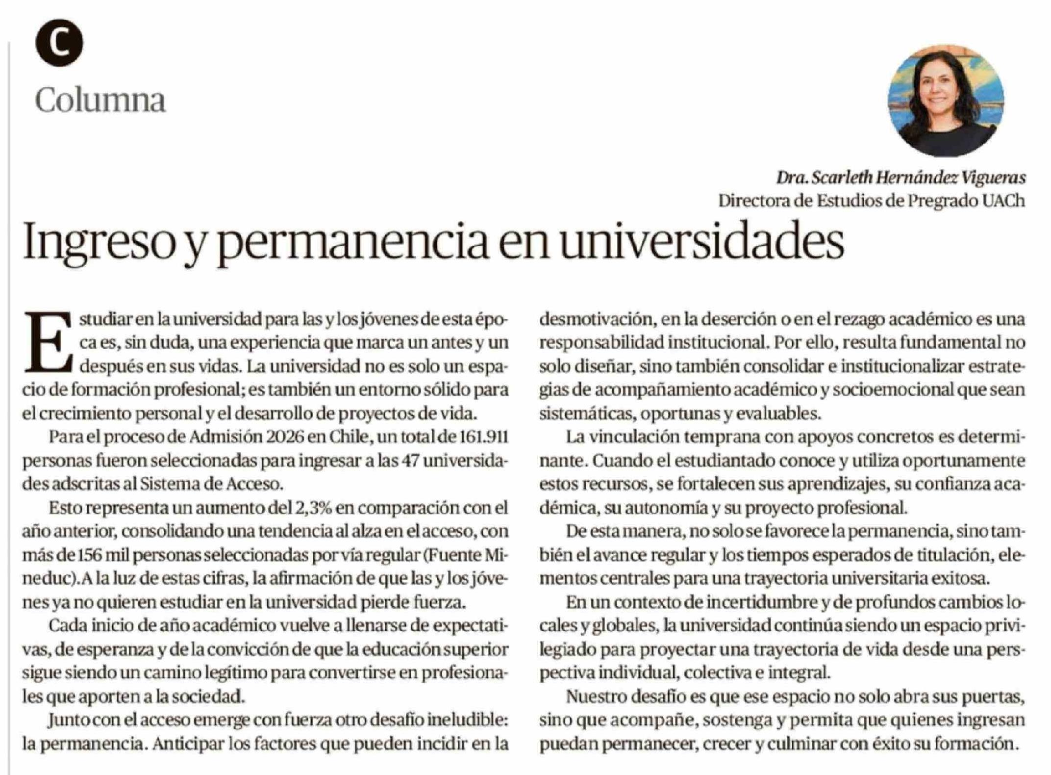 Título: Columnas de Opinión: Ingreso y permanencia en universidades