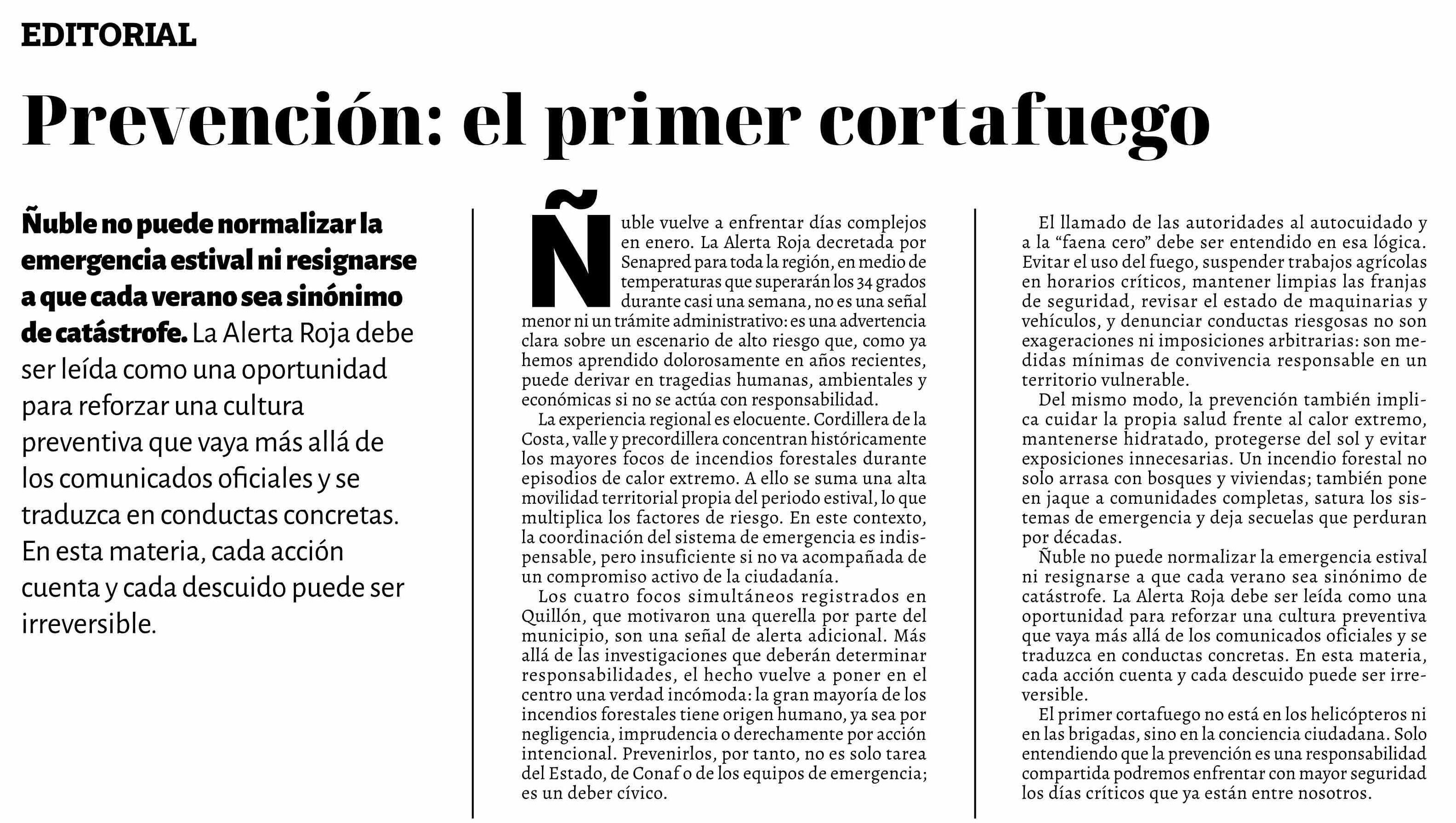 Editorial: Prevención: el primer cortafuego