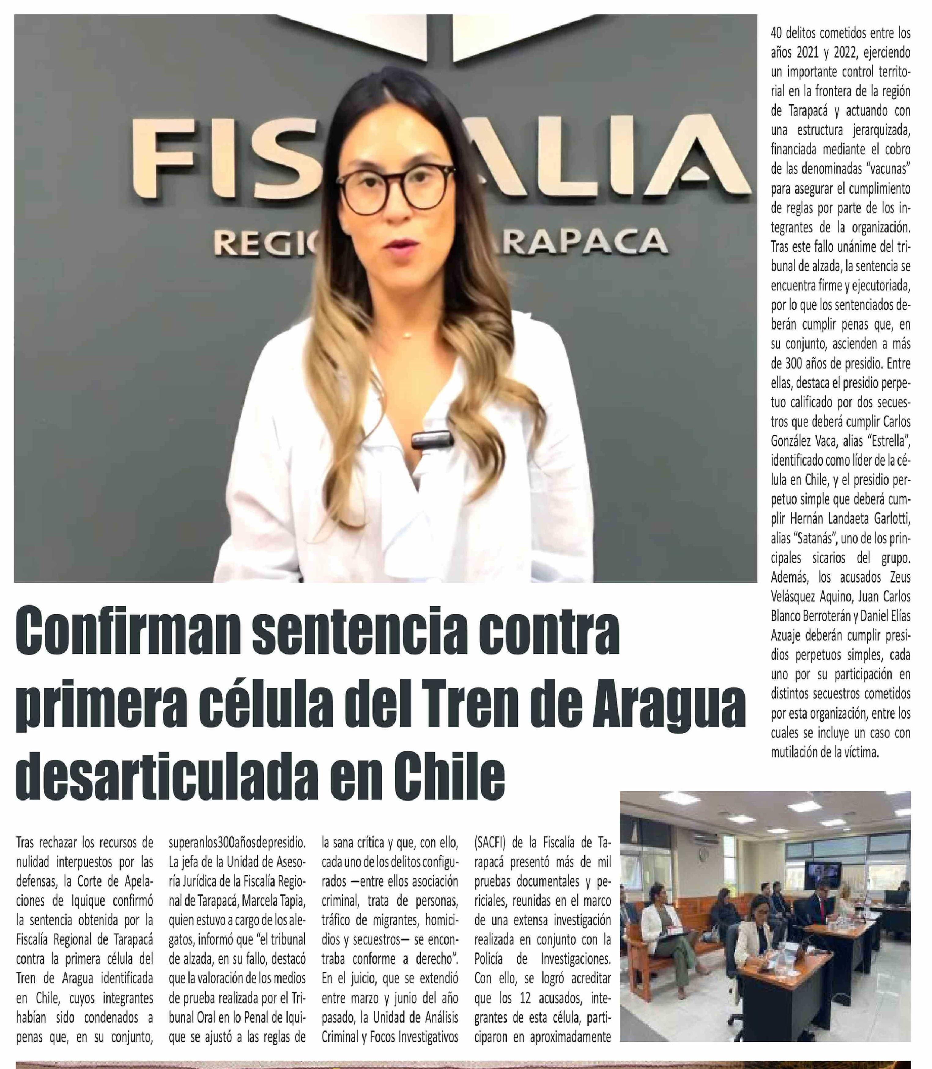 Confirman sentencia contra primera célula del Tren de Aragua desarticulada en Chile