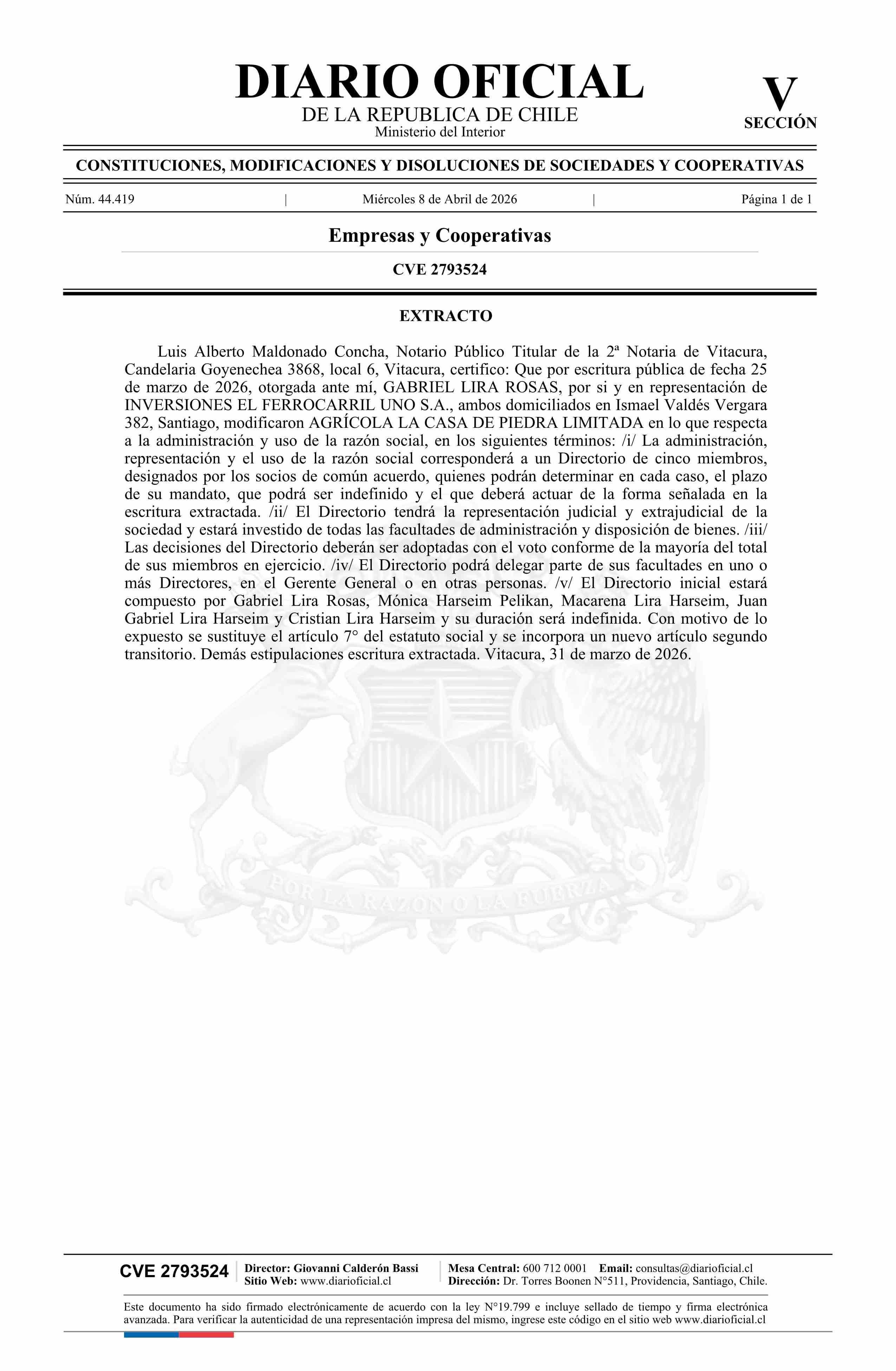 AGRÍCOLA LA CASA DE PIEDRA LIMITADA 76.024.709-K