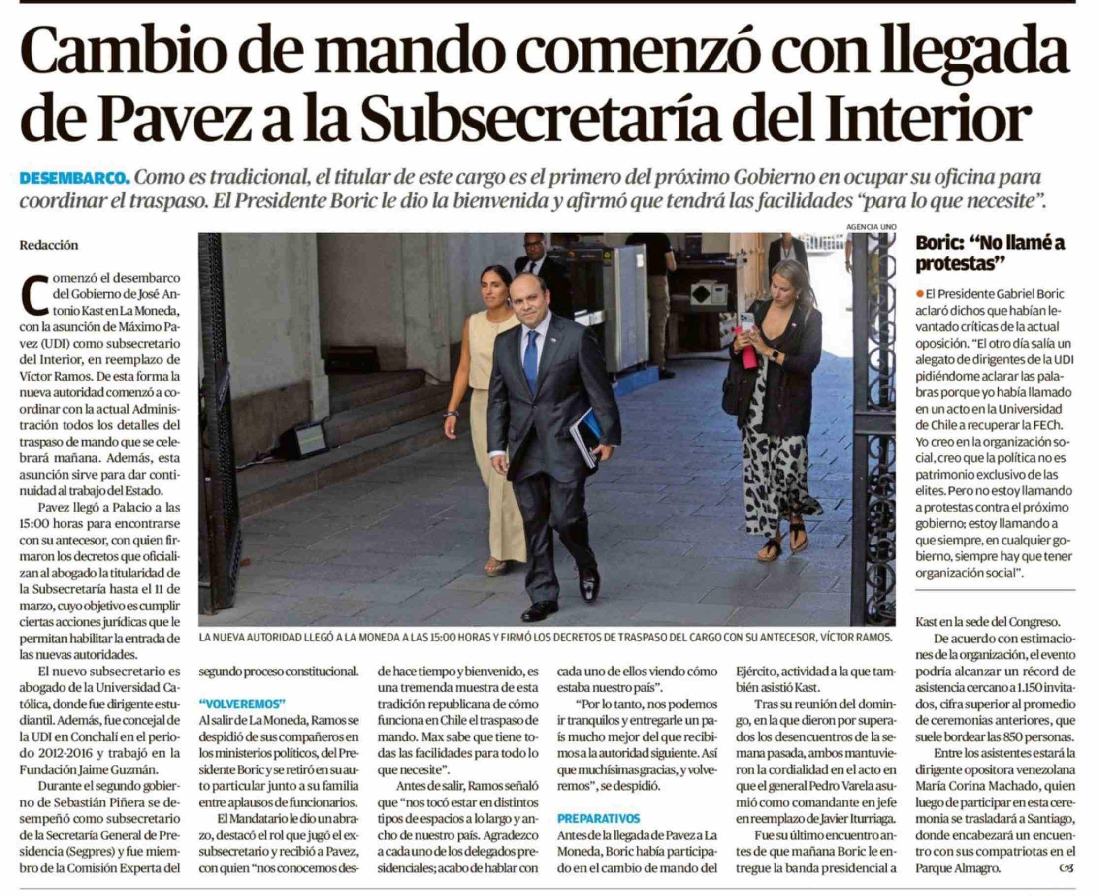 Cambio de mando comenzó con llegada de Pavez a la Subsecretaría del Interior