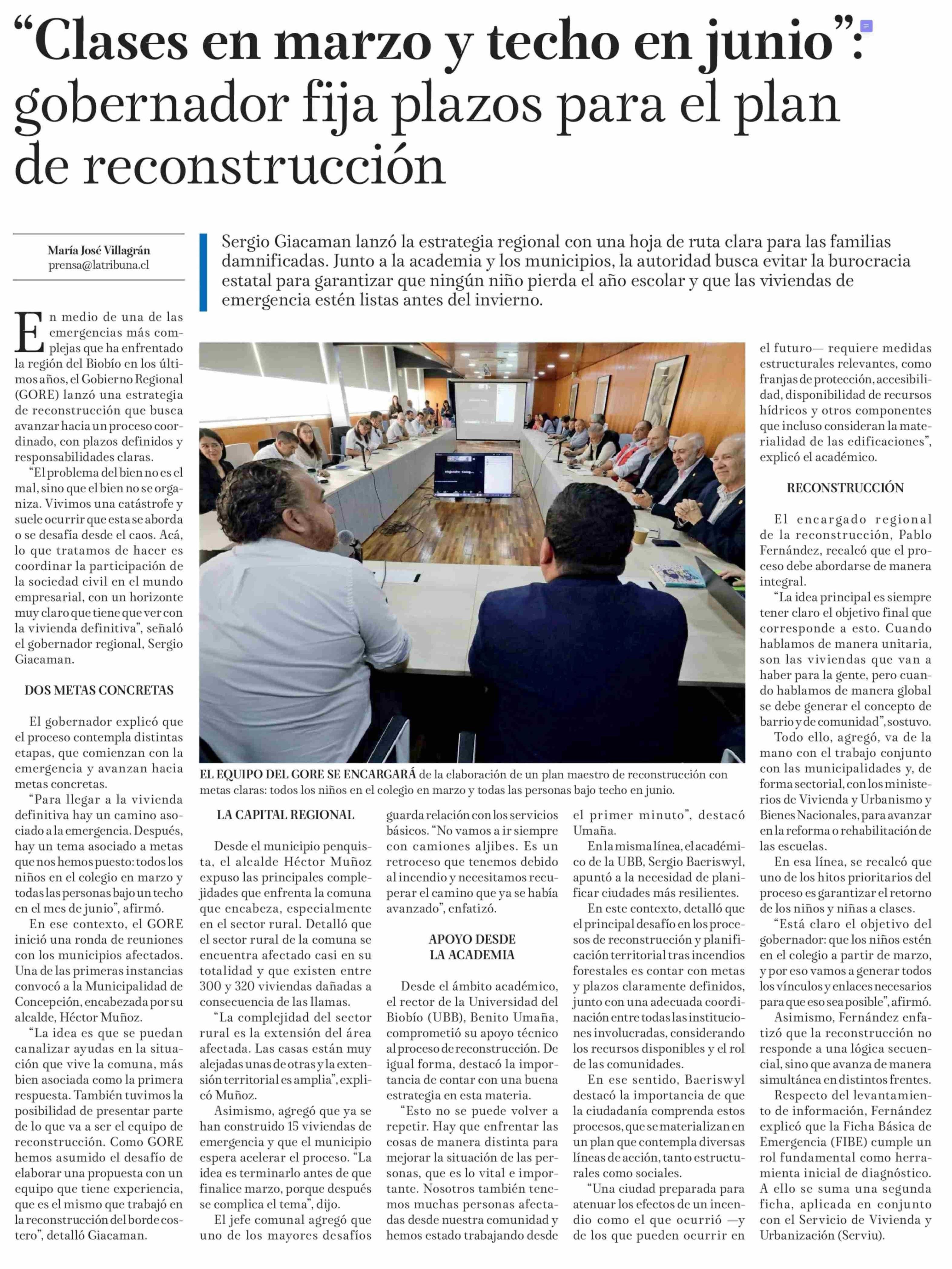 "Clases en marzo y techo en junio"! gobernador fija plazos para el plan de reconstrucción