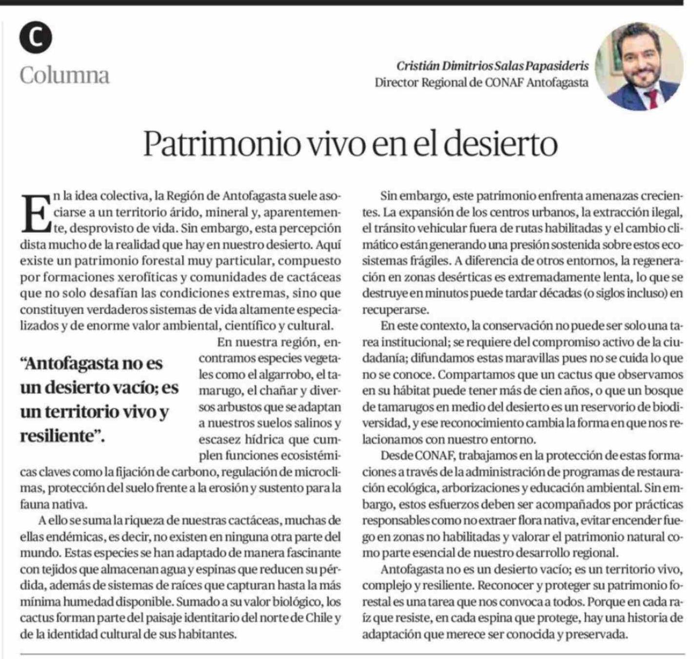 Título: Columnas de Opinión: Patrimonio vivo en el desierto