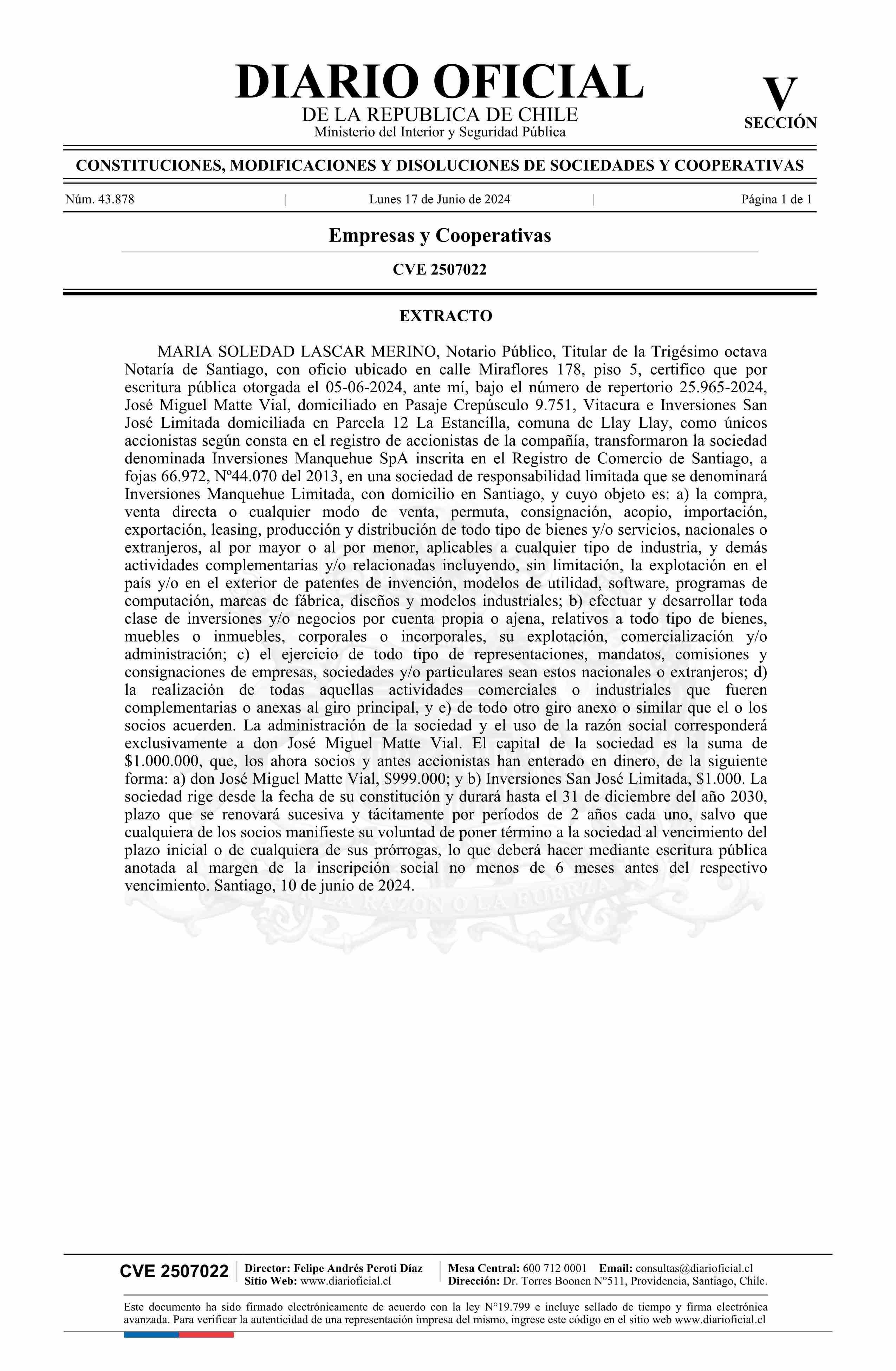 Inversiones Manquehue SpA 76.302.819-4