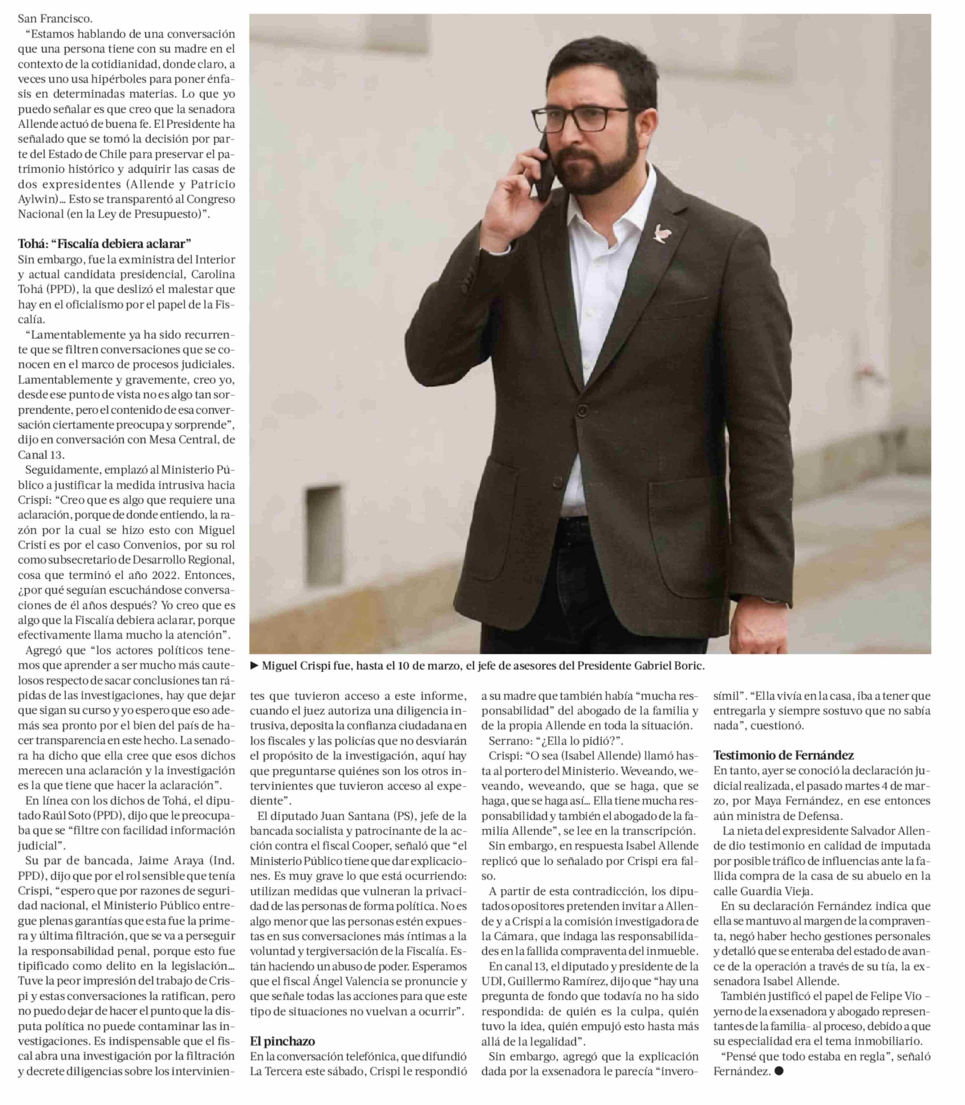 “Pinchazo” a Crispi: La Moneda en alerta por conversaciones reservadas y Tohá atiza molestia oficialista con Fiscalía