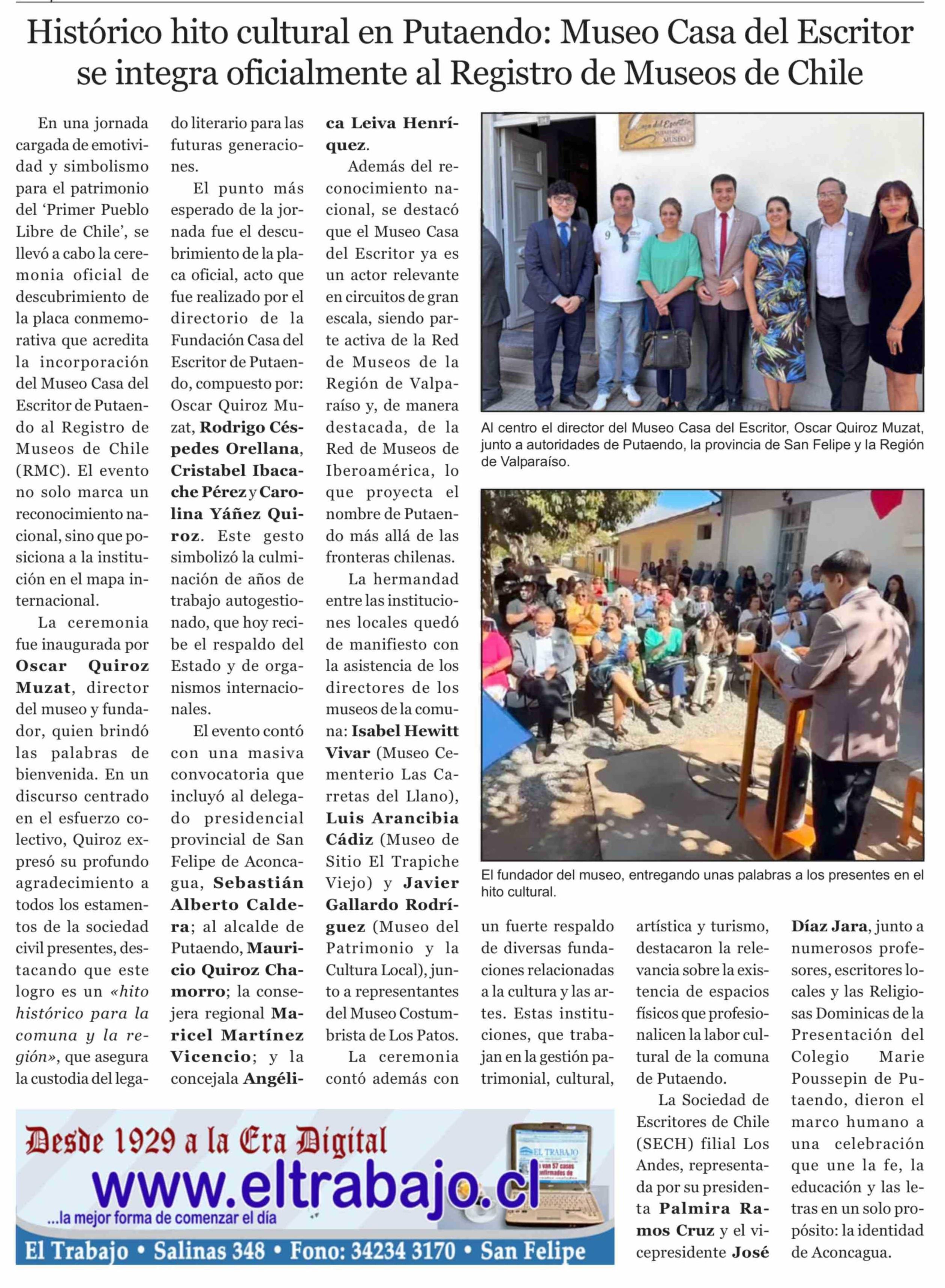Histórico hito cultural en Putaendo: Museo Casa del Escritor se integra oficialmente al Registro de Museos de Chile