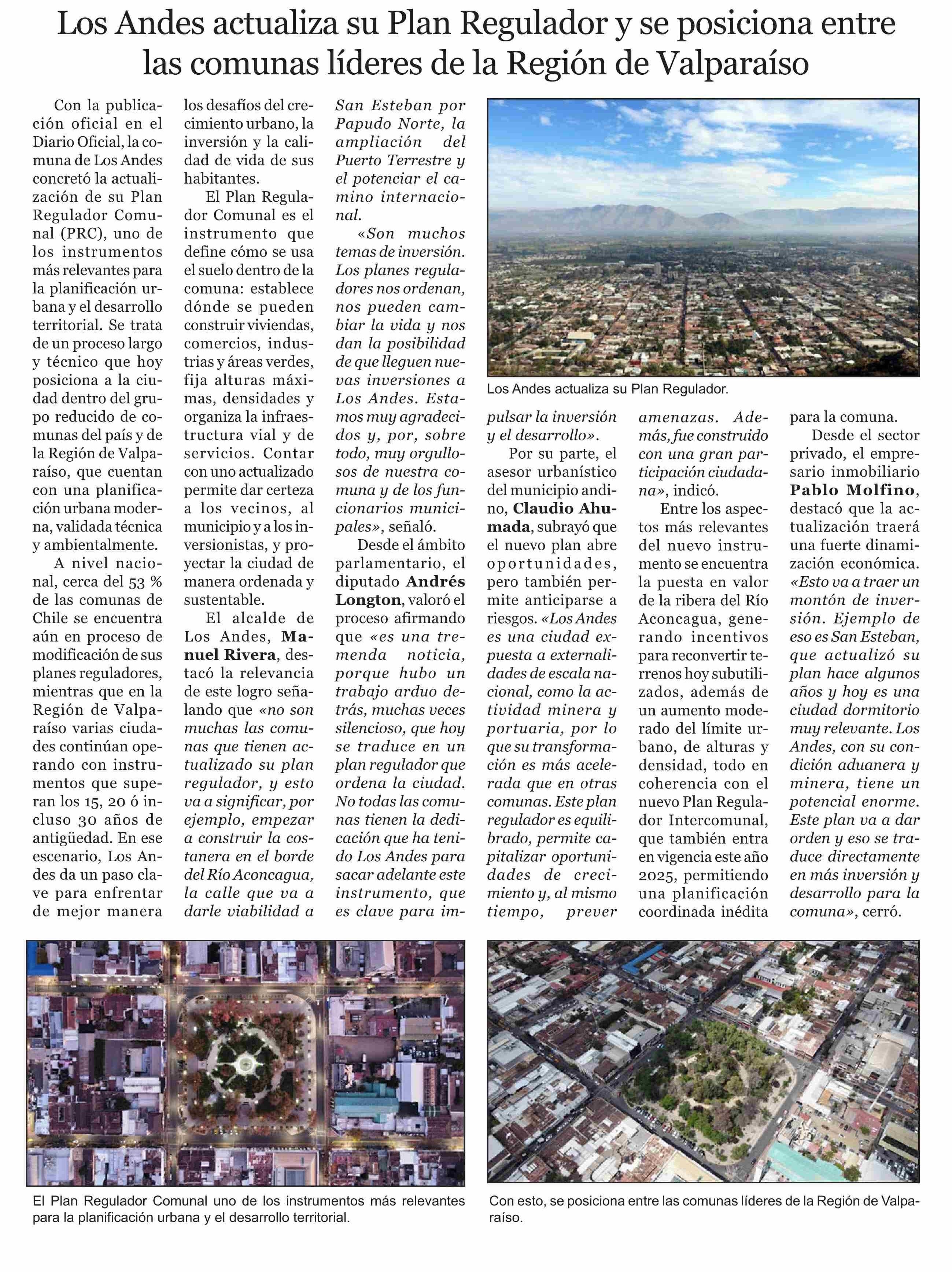 Los Andes actualiza su Plan Regulador y se posiciona entre las comunas líderes de la Región de Valparaíso